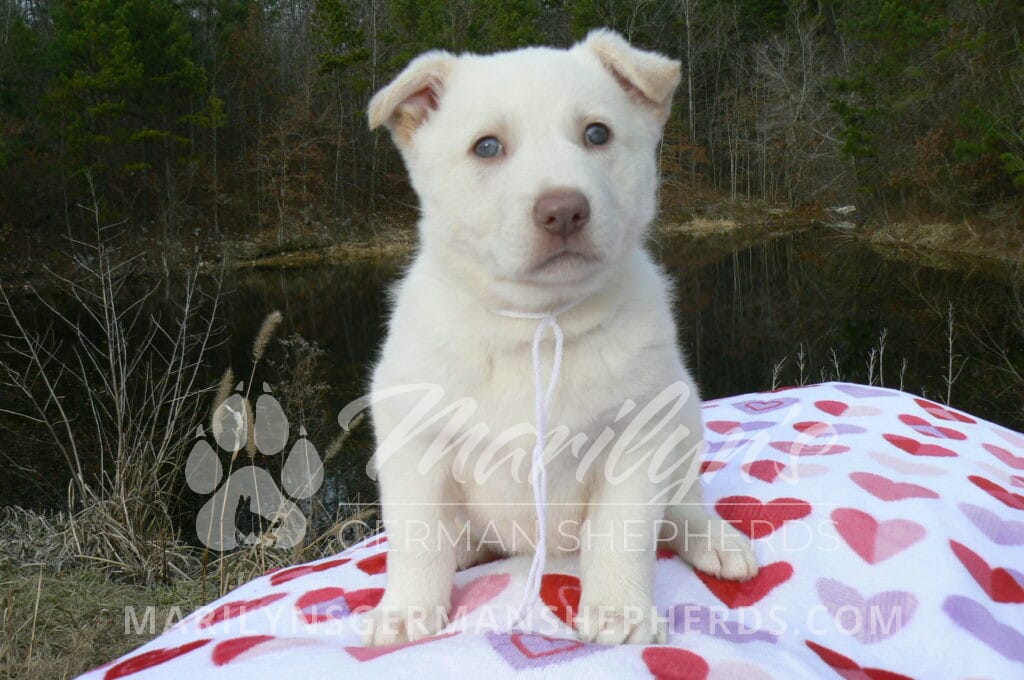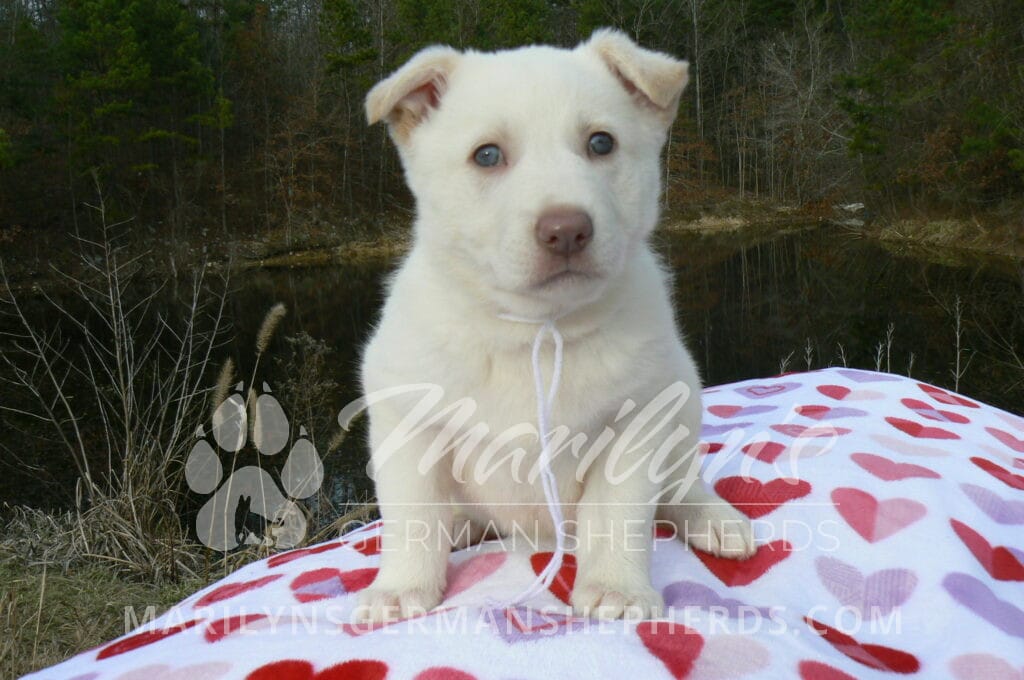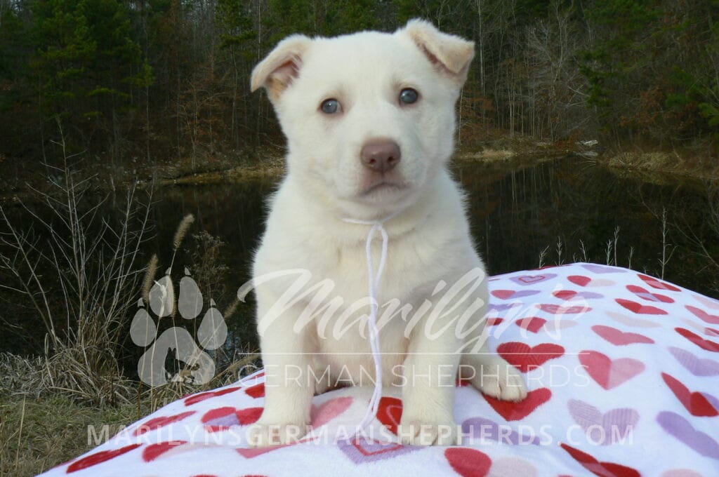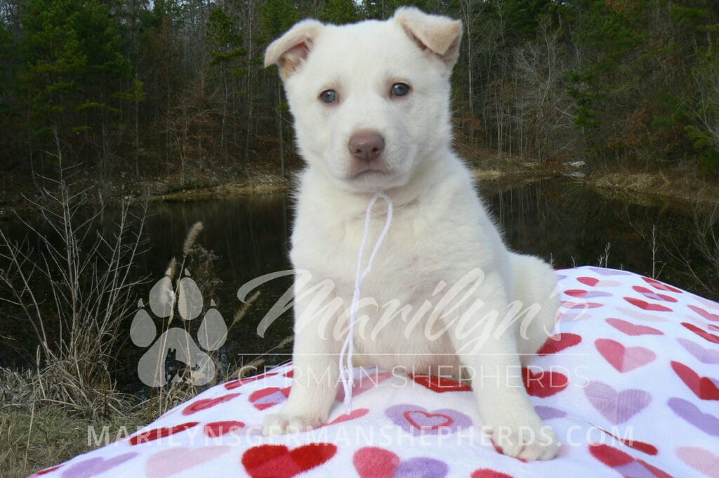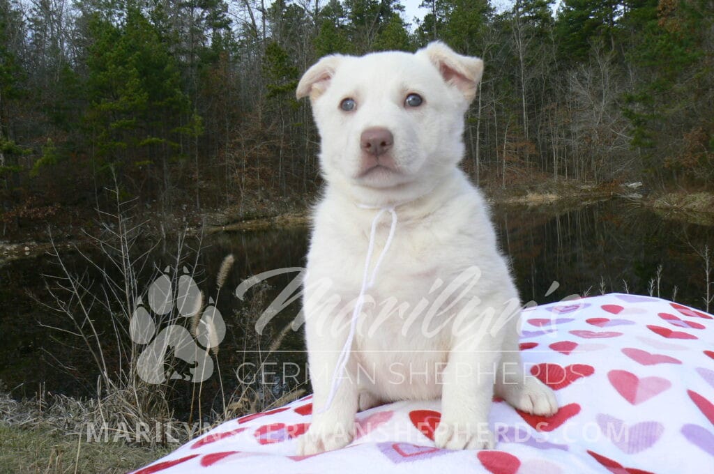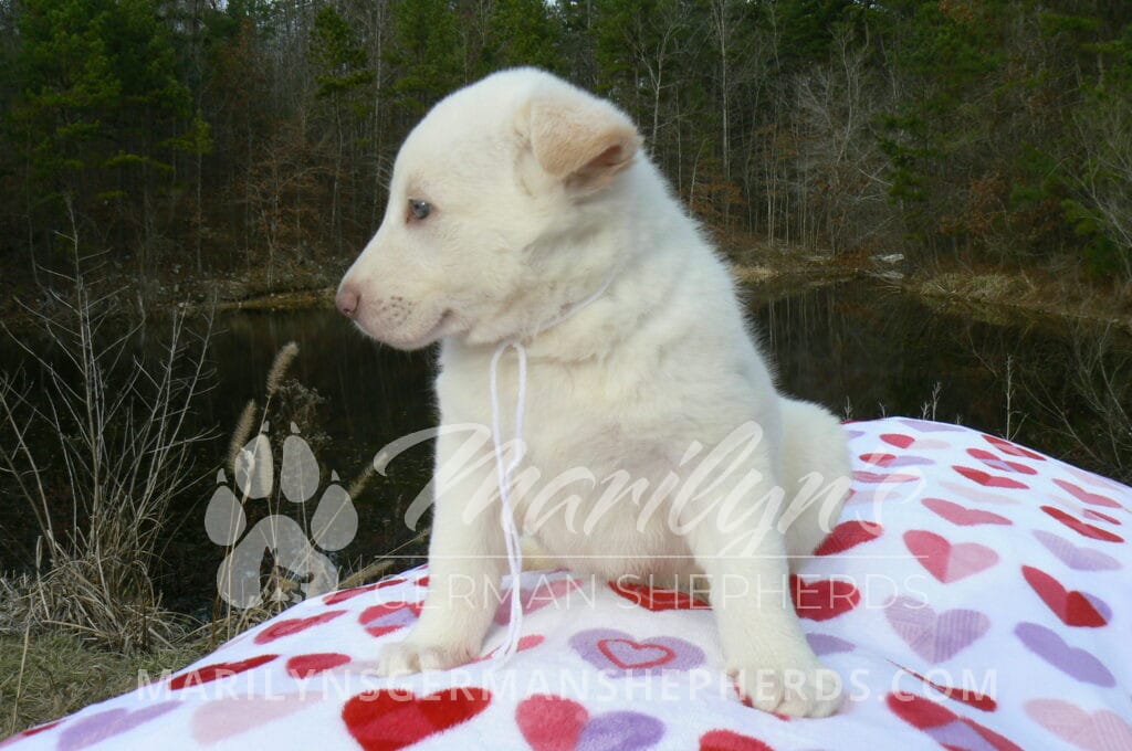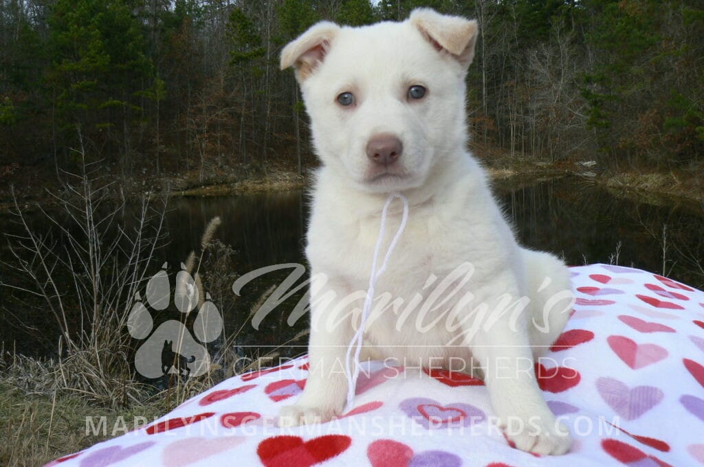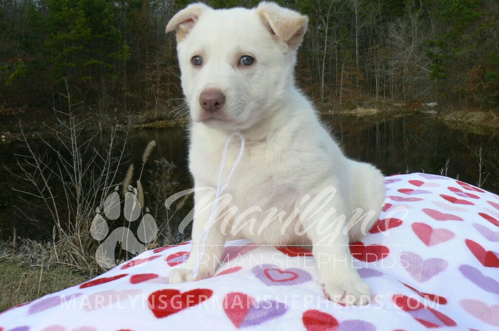 Goldie’s Miss Snowflakes and Cashmere is a beautiful rare snow white female puppy with blue eyes born 11-24-25, priced at $2150.00 with limited registration and a spay contract. PayPal Later is available for a puppy payment option. Her registration is AKC, American Kennel Club. She has a sweet calm personality. She has beautiful blue eyes. Her eyes will stay blue, or turn green, or be a light hazel color when she is an adult. She is actually a blue German Shepherd puppy in a white coat that is why she has blue eyes. She is a short coat puppy. She looks like a cute little polar bear cub romping around playing with her brothers and sisters. She is just too cute! She is very smart. She is a very friendly, loving puppy. She likes attention and likes to be picked up and loved on. She likes to be around people. She is a sweetheart that will brighten up each day. Her mother is Goldie, my blue fawn mom. Her father is Vanillabean Noel, my Isabella dad. The color Isabella is liver and blue together. She has a puppy replacement health guarantee on genetic issues until one year old. Her shots and wormings are up to date and she has been vet checked. She comes with 30 days of free pet insurance on accidents and illnesses, that the new pet owner must activate. After the free 30 days you can keep the pet insurance or it will self cancel. She can be reserved for you with a $200.00 non-refundable deposit. I accept puppy payment through Paypal, cash, credit card, PayPal Later or Venmo. She is available for puppy pick up January 19th. She can be shipped. Shipping is $680.00 which includes crate, airfare and health certificate. I fly my puppies on Fridays. She will make an amazing new addition to your family.