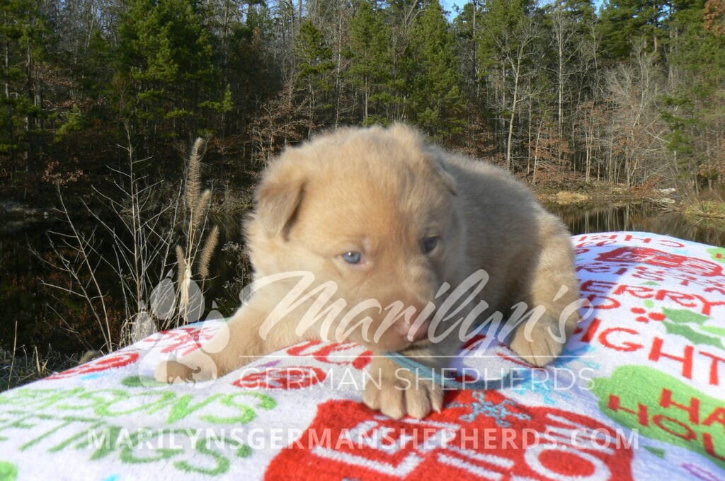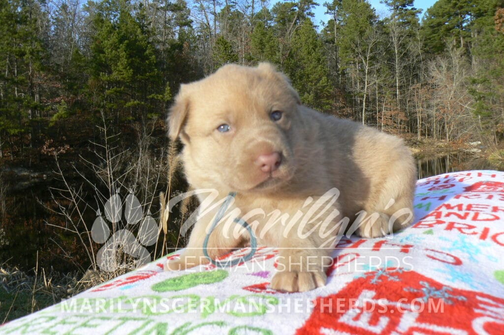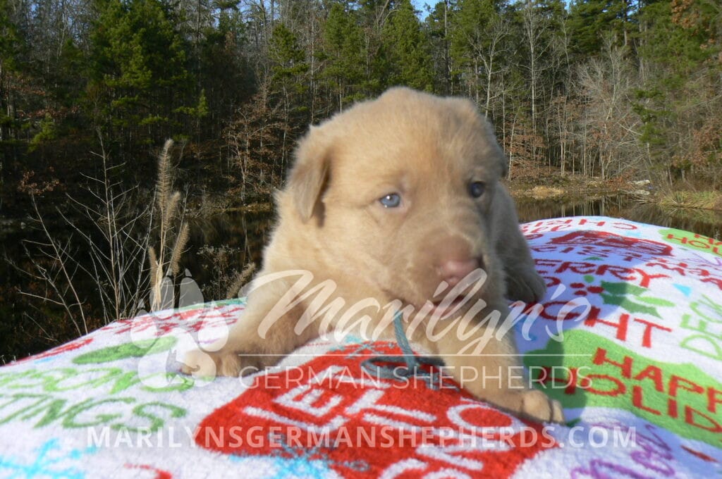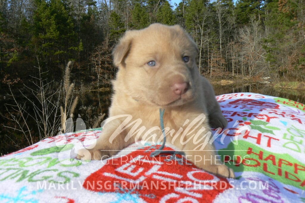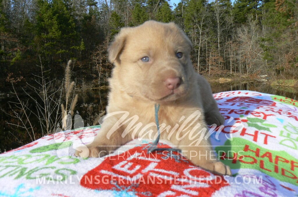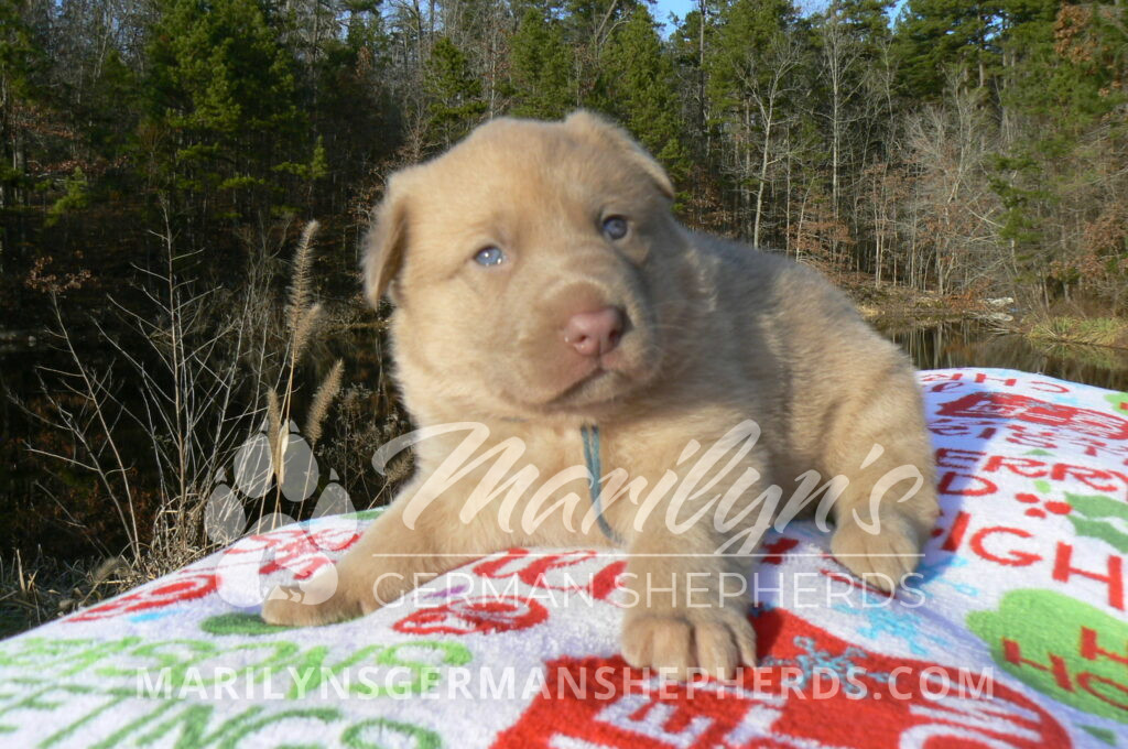 Goldie’s Mr. Moonlight Path is a rare Isabella fawn male puppy born 11-24-25, priced at $2350.00 with limited registration and a neuter contract. He has the option of PayPal Later payment plan through my website. His registration is AKC, American Kennel Club. He has a playful personality. He is ready to join your family. He has blue eyes. As an adult his eyes will stay blue or turn green or a gold hazel color. He is a very large boned puppy and will be a very big German Shepherd when he is an adult. He is a very friendly puppy. He enjoys attention. He likes to play with his brothers and sisters. He has a soft short coat. He will keep the Isabella mask on his face when he is an adult. Isabella is liver and blue together. His body will be a golden color. He is very alert and smart. He likes to be with people. He will bring joy to your family. His mother is Goldie, my blue fawn mom. His father is Vanillabean Noel, my Isabella dad. The color Isabella is liver and blue together. He has a puppy replacement health guarantee on genetic issues until one year old. His shots and wormings are up to date and he has been vet checked. He comes with 30 days of pet insurance free for accidents and illnesses, that the new pet owner must activate. After the free 30 days you can keep the pet insurance or it will self cancel. He can be reserved for you with a $200.00 non-refundable deposit. I accept puppy payment through Paypal, cash, credit card, or Venmo. He is available for puppy pick up January 19th. He can be shipped. Shipping is an additional cost of $680.00 which includes crate, airfare, and health certificate. I fly my puppies on Fridays. He will make an amazing new addition to your family.