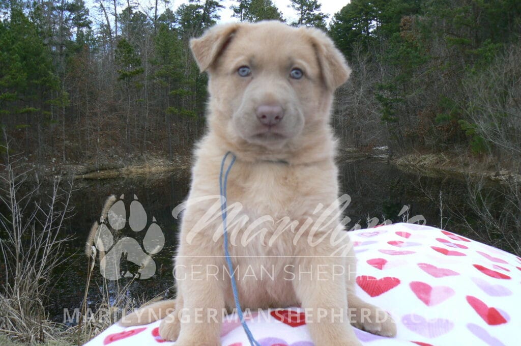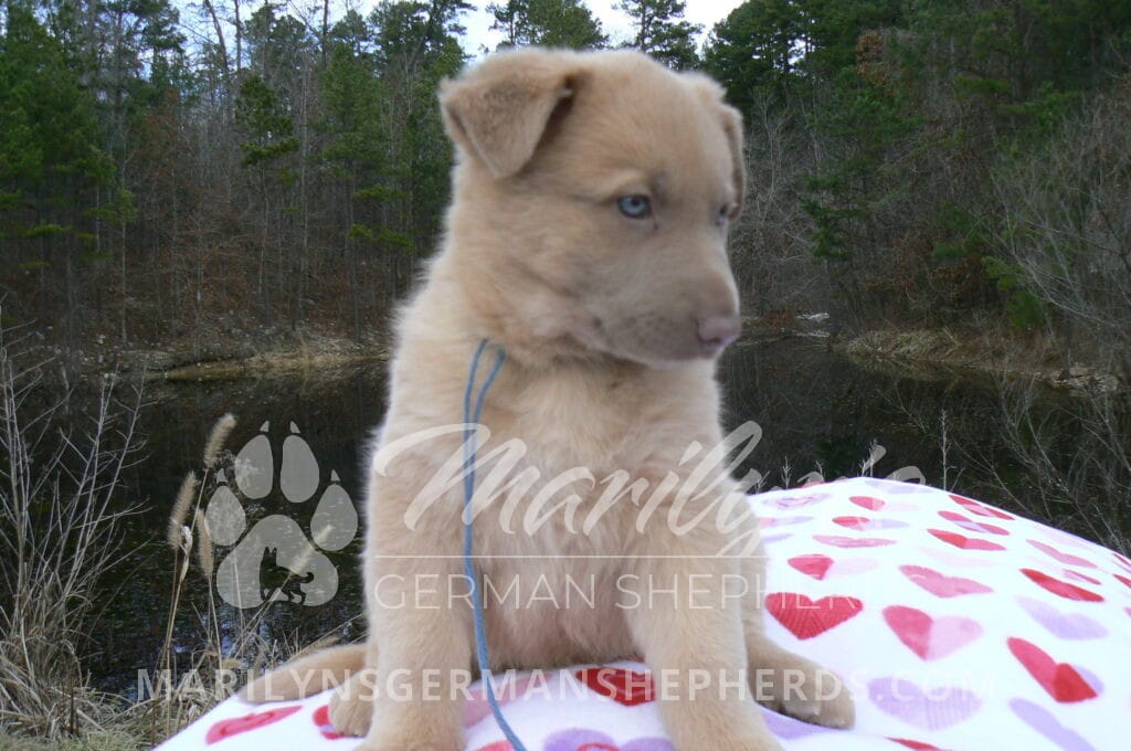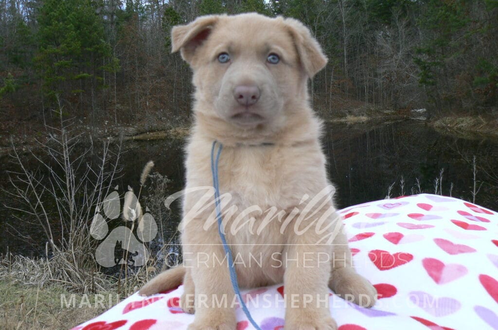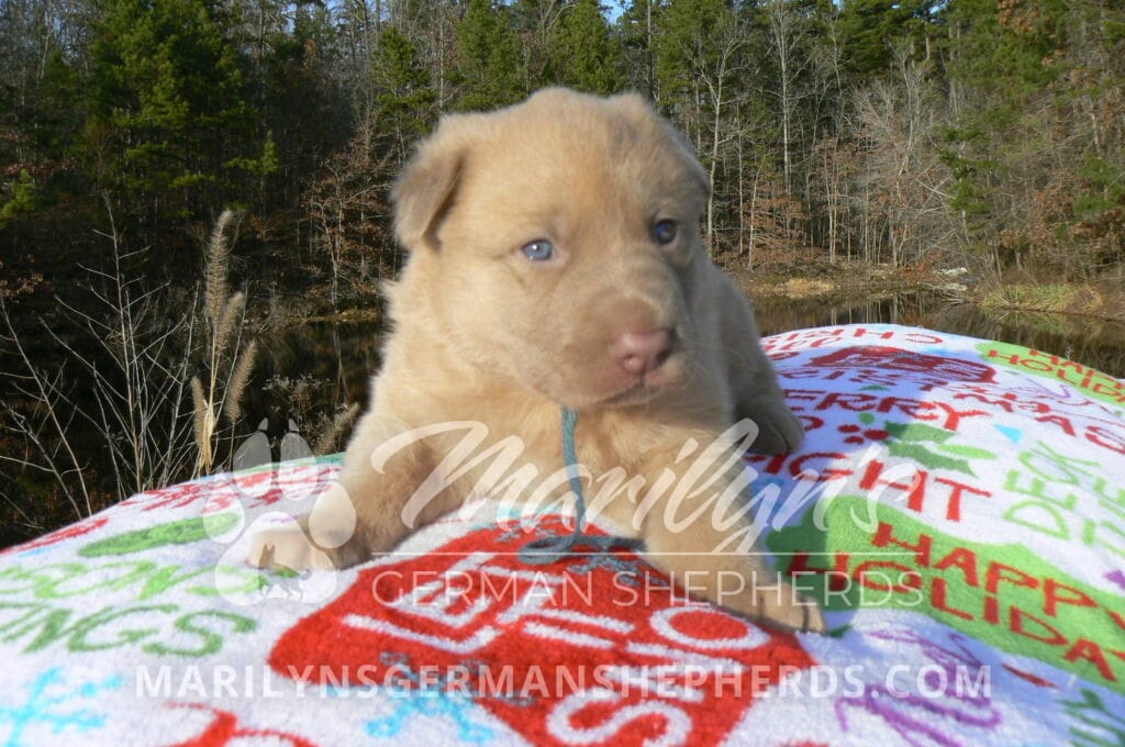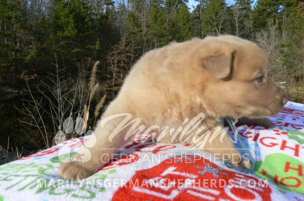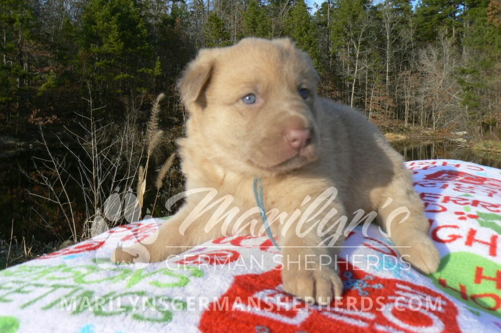 Goldie’s Mr. Moonlight Path is a rare Isabella fawn male puppy born 11-24-25, priced at $2350.00 with limited registration and a neuter contract. He has the option of PayPal Later payment plan through my website. His registration is AKC, American Kennel Club. He has a playful personality. He is ready to join your family. He has blue eyes. As an adult his eyes will stay blue or turn green or a gold hazel color. He is a very large boned puppy and will be a very big German Shepherd when he is an adult. He is a very friendly puppy. He enjoys attention. He likes to play with his brothers and sisters. He has a soft short coat. He will keep the Isabella mask on his face when he is an adult. Isabella is liver and blue together. His body will be a golden color. He is very alert and smart. He likes to be with people. He will bring joy to your family. His mother is Goldie, my blue fawn mom. His father is Vanillabean Noel, my Isabella dad. The color Isabella is liver and blue together. He has a puppy replacement health guarantee on genetic issues until one year old. His shots and wormings are up to date and he has been vet checked. He comes with 30 days of pet insurance free for accidents and illnesses, that the new pet owner must activate. After the free 30 days you can keep the pet insurance or it will self cancel. He can be reserved for you with a $200.00 non-refundable deposit. I accept puppy payment through Paypal, cash, credit card, or Venmo. He is available for puppy pick up January 19th. He can be shipped. Shipping is an additional cost of $680.00 which includes crate, airfare, and health certificate. I fly my puppies on Fridays. He will make an amazing new addition to your family.