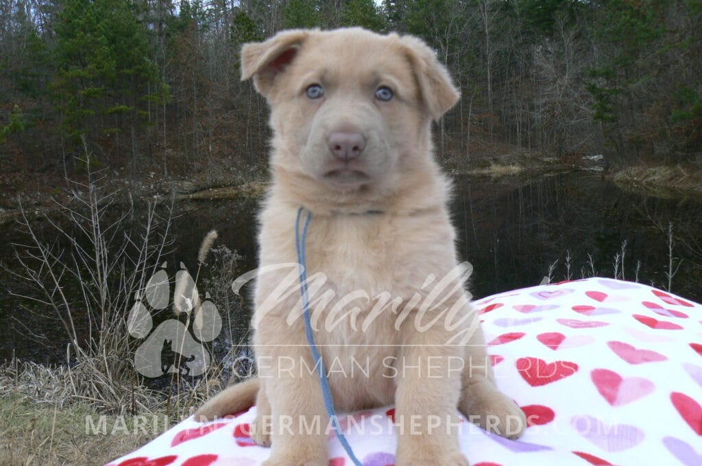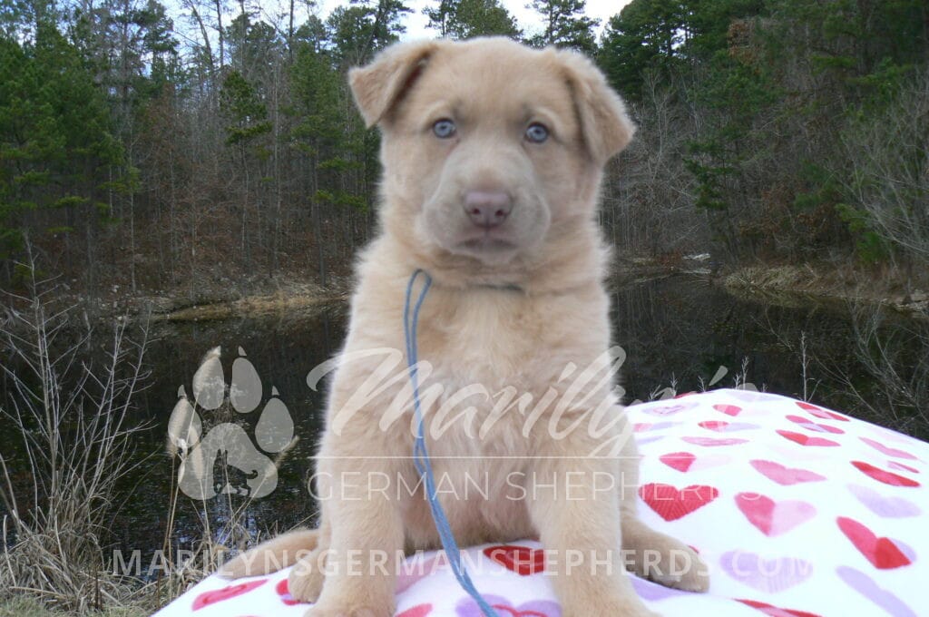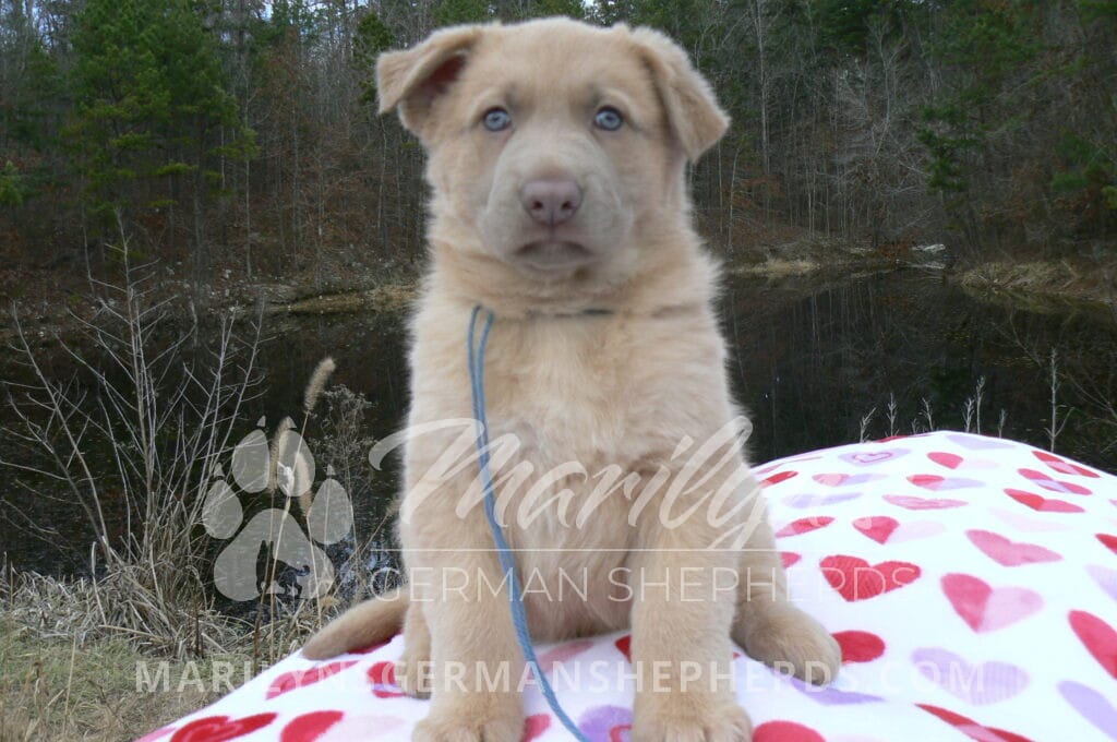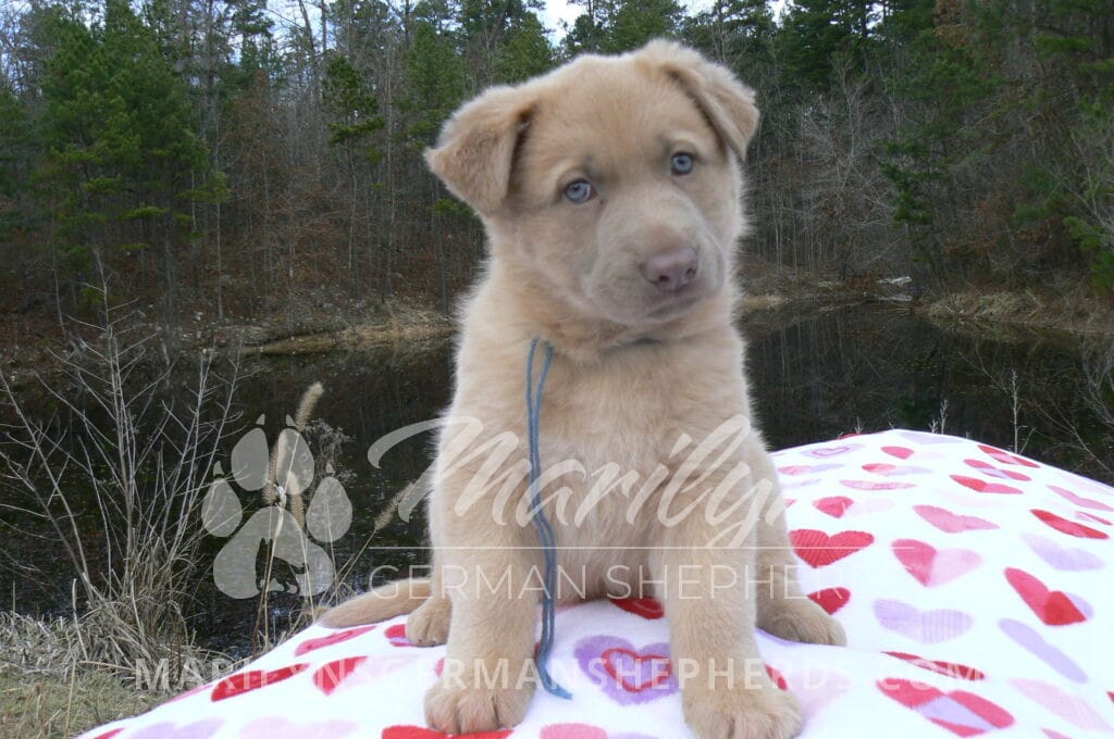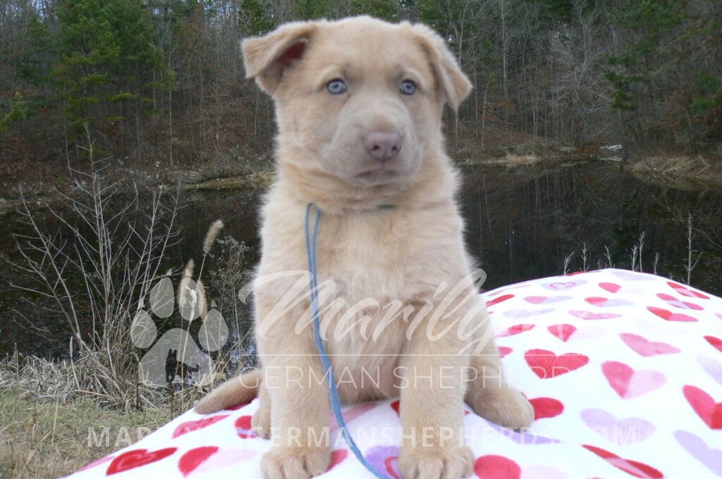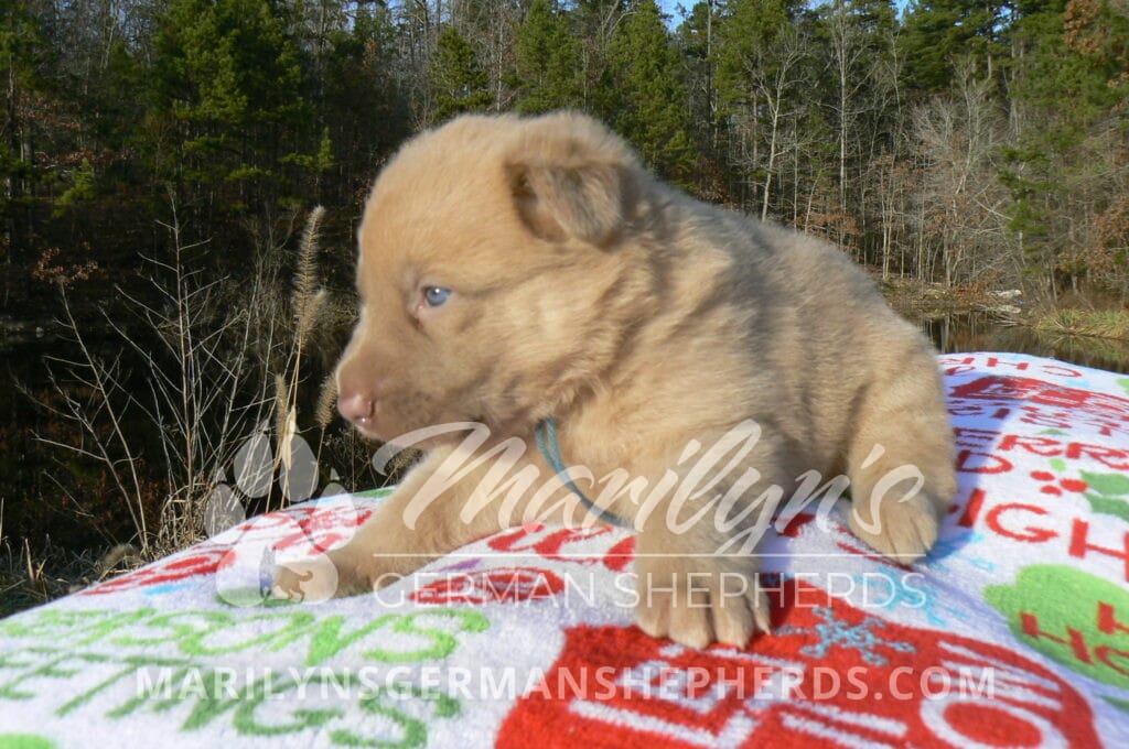 Goldie’s Mr. Moonlight Path is a rare Isabella fawn male puppy born 11-24-25, priced at $2350.00 with limited registration and a neuter contract. He has the option of PayPal Later payment plan through my website. His registration is AKC, American Kennel Club. He has a playful personality. He is ready to join your family. He has blue eyes. As an adult his eyes will stay blue or turn green or a gold hazel color. He is a very large boned puppy and will be a very big German Shepherd when he is an adult. He is a very friendly puppy. He enjoys attention. He likes to play with his brothers and sisters. He has a soft short coat. He will keep the Isabella mask on his face when he is an adult. Isabella is liver and blue together. His body will be a golden color. He is very alert and smart. He likes to be with people. He will bring joy to your family. His mother is Goldie, my blue fawn mom. His father is Vanillabean Noel, my Isabella dad. The color Isabella is liver and blue together. He has a puppy replacement health guarantee on genetic issues until one year old. His shots and wormings are up to date and he has been vet checked. He comes with 30 days of pet insurance free for accidents and illnesses, that the new pet owner must activate. After the free 30 days you can keep the pet insurance or it will self cancel. He can be reserved for you with a $200.00 non-refundable deposit. I accept puppy payment through Paypal, cash, credit card, or Venmo. He is available for puppy pick up January 19th. He can be shipped. Shipping is an additional cost of $680.00 which includes crate, airfare, and health certificate. I fly my puppies on Fridays. He will make an amazing new addition to your family.