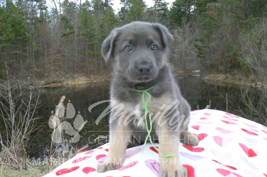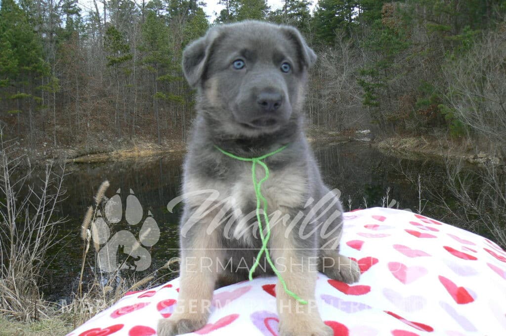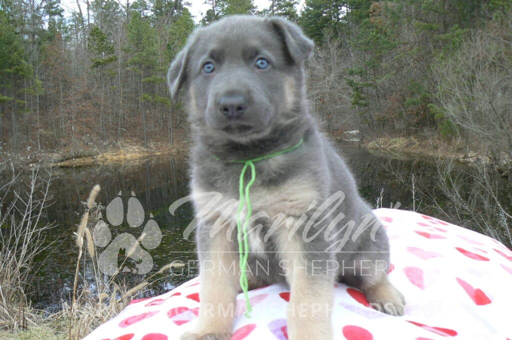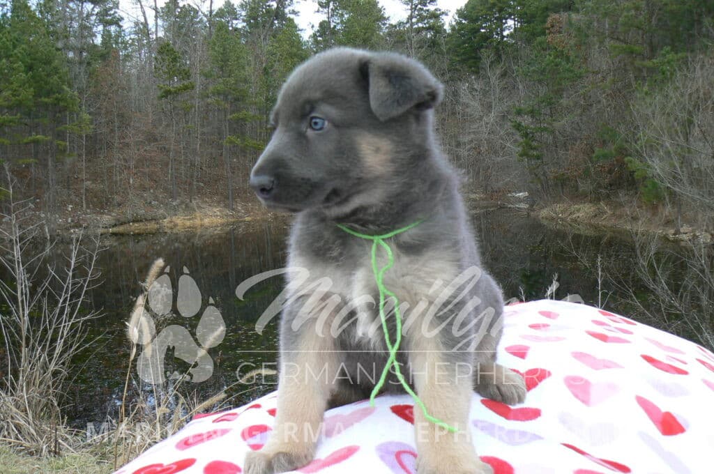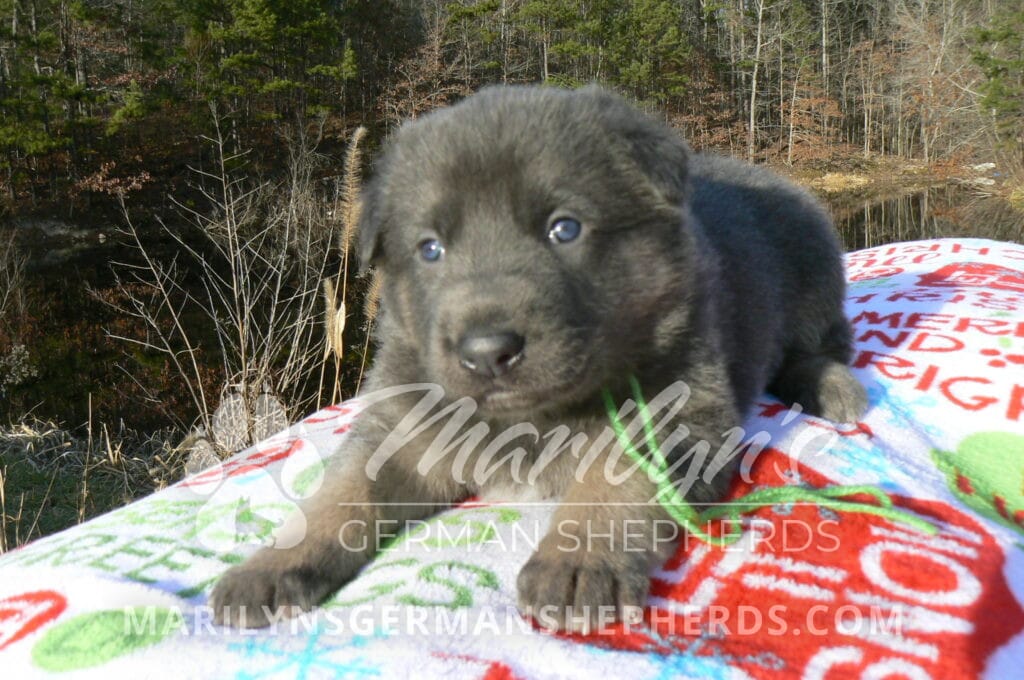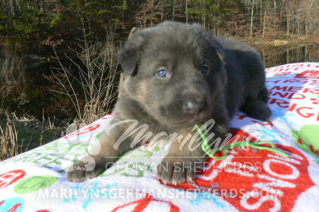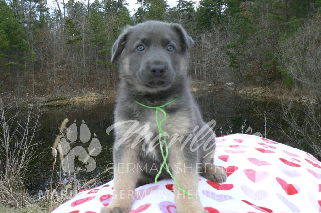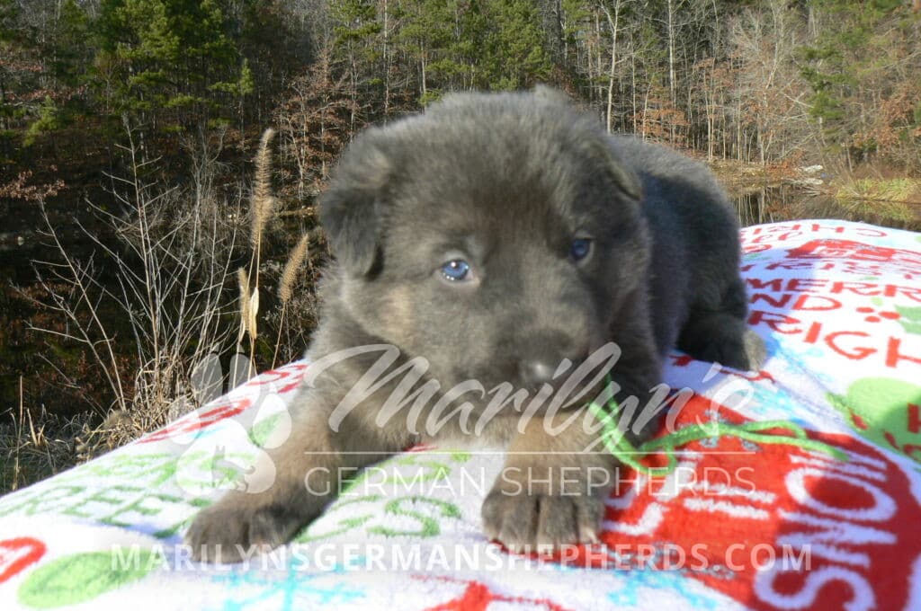 Goldie’s Mr. Toasted Pistachio is a blue and tan male puppy born 11-24-25, priced at $2150.00 with limited registration and a neuter contract. He has the option of PayPal Later payment plan through my website. His registration is AKC, American Kennel Club. He has a laidback personality. He has blue eyes. As an adult his eyes will stay blue or turn green or a gold hazel color. He is a very large boned puppy and will be a very big German Shepherd when he is an adult. He is a very friendly puppy. He enjoys attention. He likes to play with his litter mates. He has a soft short coat. He will keep the blue mask on his face when he is an adult and be saddled down his back with the blue. The color blue in a German Shepherd is a soft gray color. He is very alert and smart. He likes to be with people. He is an awesome puppy. His mother is Goldie, my blue fawn mom. His father is Vanillabean Noel, my Isabella dad. The color Isabella is liver and blue together. He has a puppy replacement health guarantee on genetic issues until one year old. His shots and wormings are up to date and he has been vet checked. He comes with 30 days of pet insurance free for accidents and illnesses, that the new pet owner must activate. After the free 30 days you can keep the pet insurance or it will self cancel. He can be reserved for you with a $200.00 non-refundable deposit. I accept puppy payment through Paypal, cash, credit card, or Venmo. He is available for puppy pick up January 19th. He can be shipped. Shipping is an additional cost of $680.00 which includes crate, airfare, and health certificate. I fly my puppies on Fridays. He will make an amazing new addition to your family.