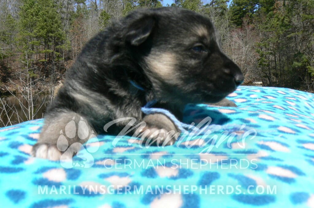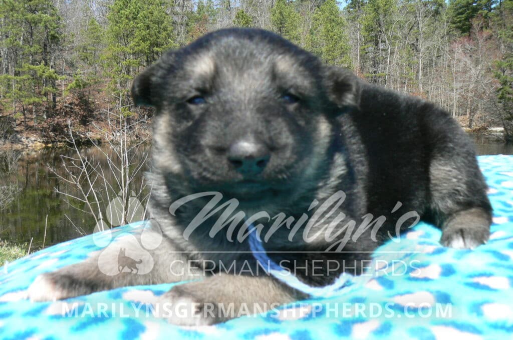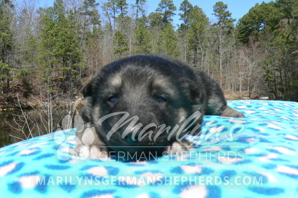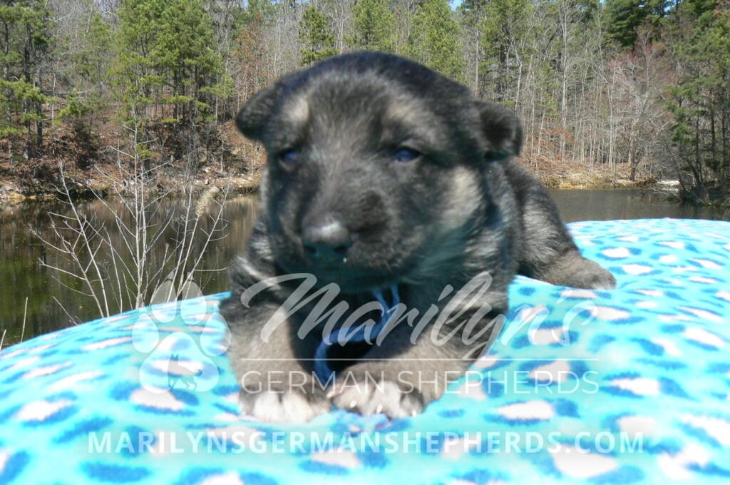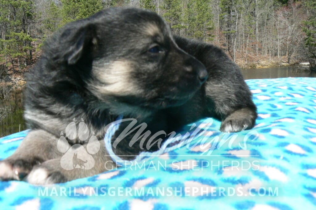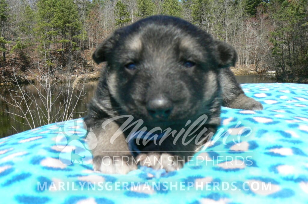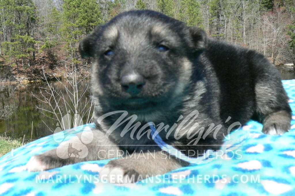 Love Spell’s Miss Warm Ocean Breeze is a beautiful black and silver female puppy born 2-24-26, priced at $1850.00 with limited registration and a spay contract. PayPal Later is available for a puppy payment option. Her registration is AKC, American Kennel Club. She has a playful personality. She is a very observant puppy. She is a short coat black and silver puppy. She will keep the black mask on her face as an adult. She will have the classic German Shepherd look. She is very smart. She likes to be picked up and loved on. She is a very friendly, loving puppy. She likes attention and likes to be loved on. She likes to play with her brother and her mom. She is adorable. Her mother is Midnight Illusion, one of my black moms. Her father is Cimarron, one of my black and tan dads. She has a puppy replacement health guarantee on genetic issues until one year old. Her shots and wormings are up to date and she has been vet checked. She comes with 30 days of free pet insurance on accidents and illnesses, that the new pet owner must activate. After the free 30 days you can keep the pet insurance or it will self cancel. She can be reserved for you with a $200.00 non-refundable deposit. I accept puppy payment through Paypal, cash, credit card, PayPal Later or Venmo. She is available for puppy pick up April 21st. She can be shipped. Shipping is $680.00 which includes crate, airfare and health certificate. I fly my puppies on Fridays. She will make an amazing new addition to your family.