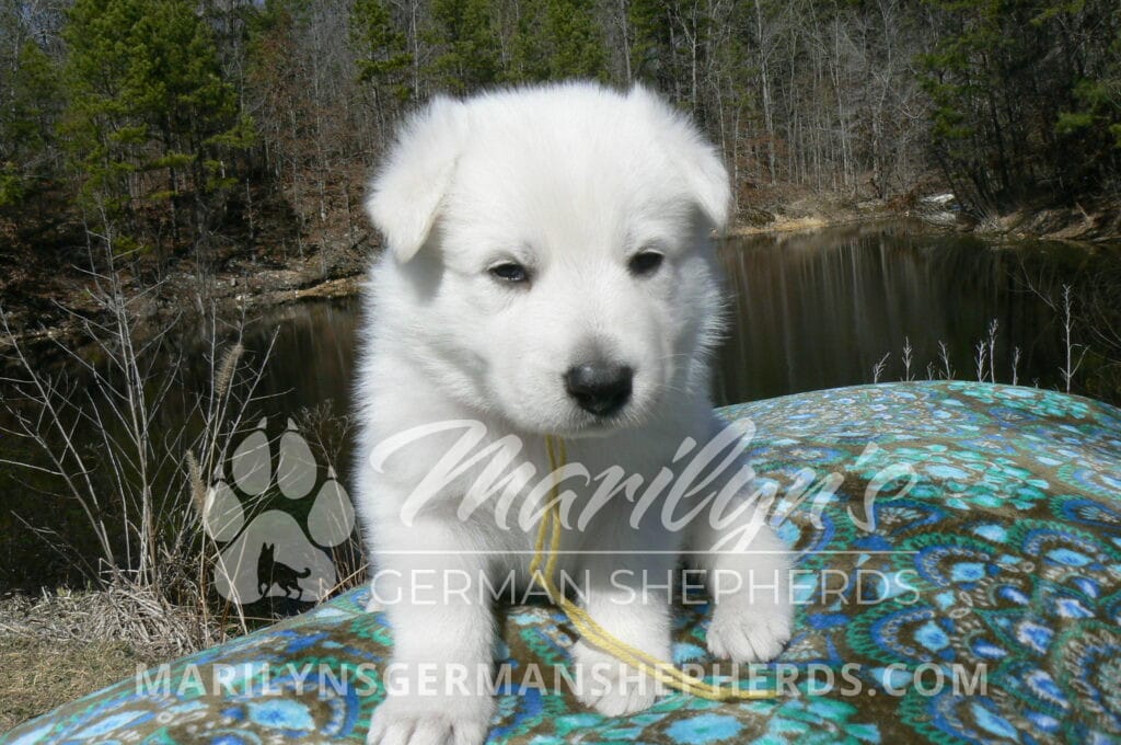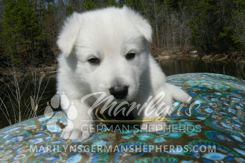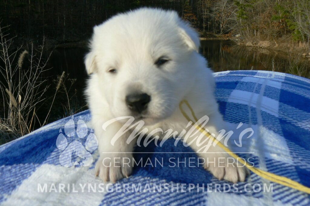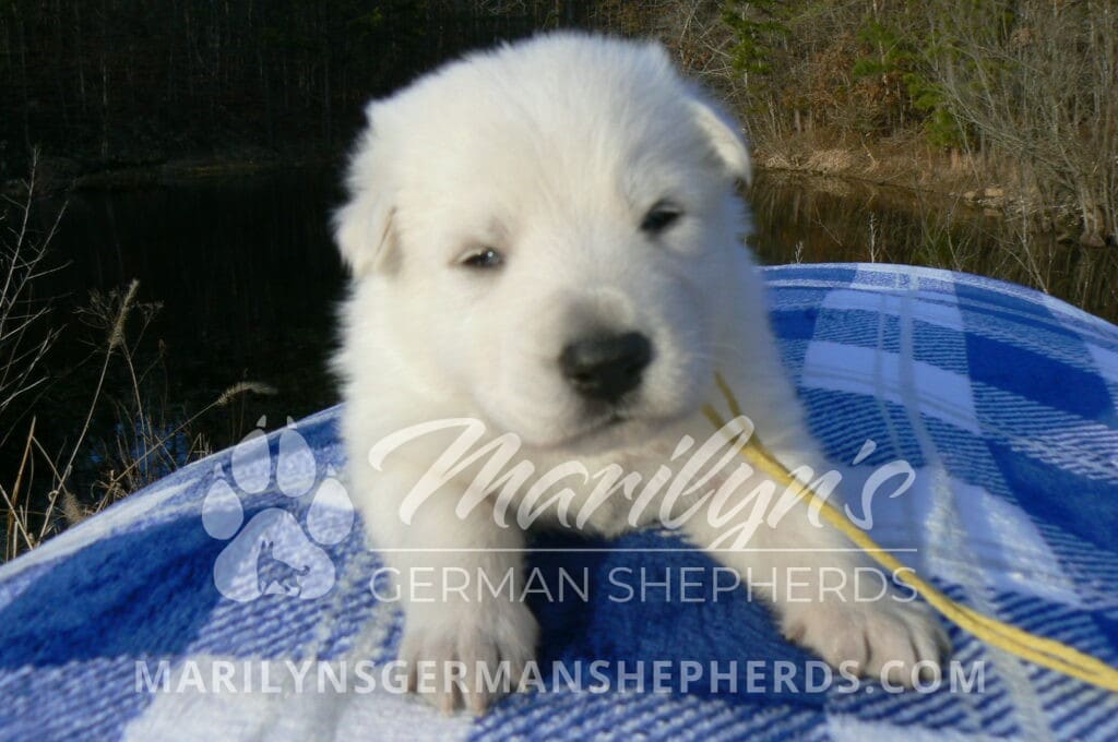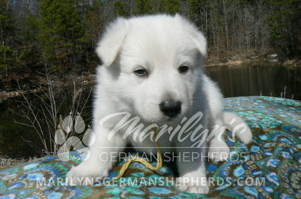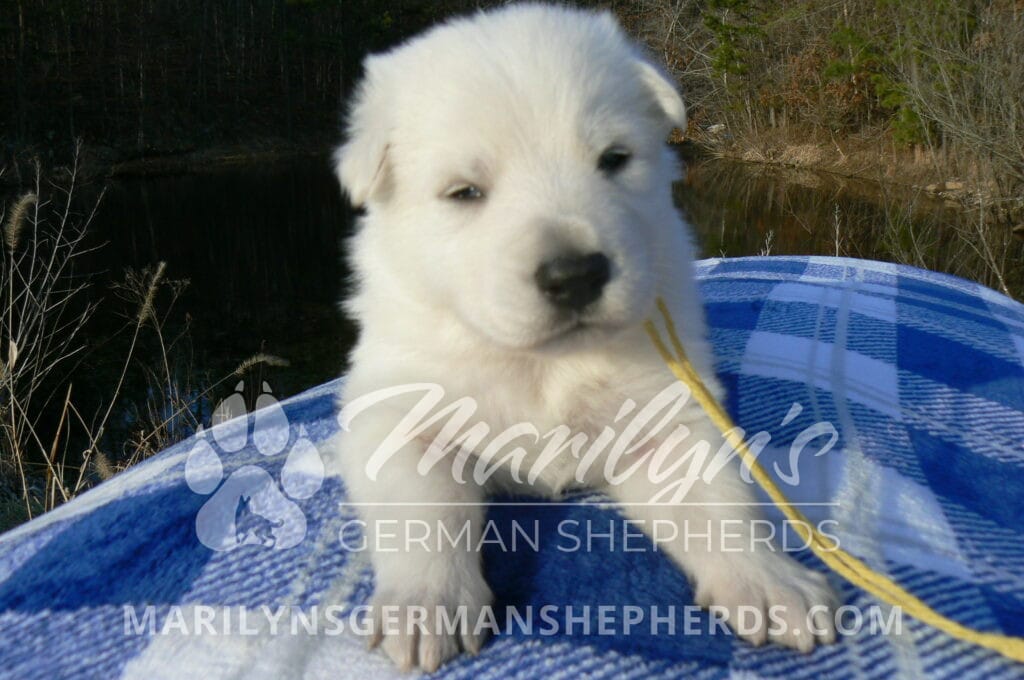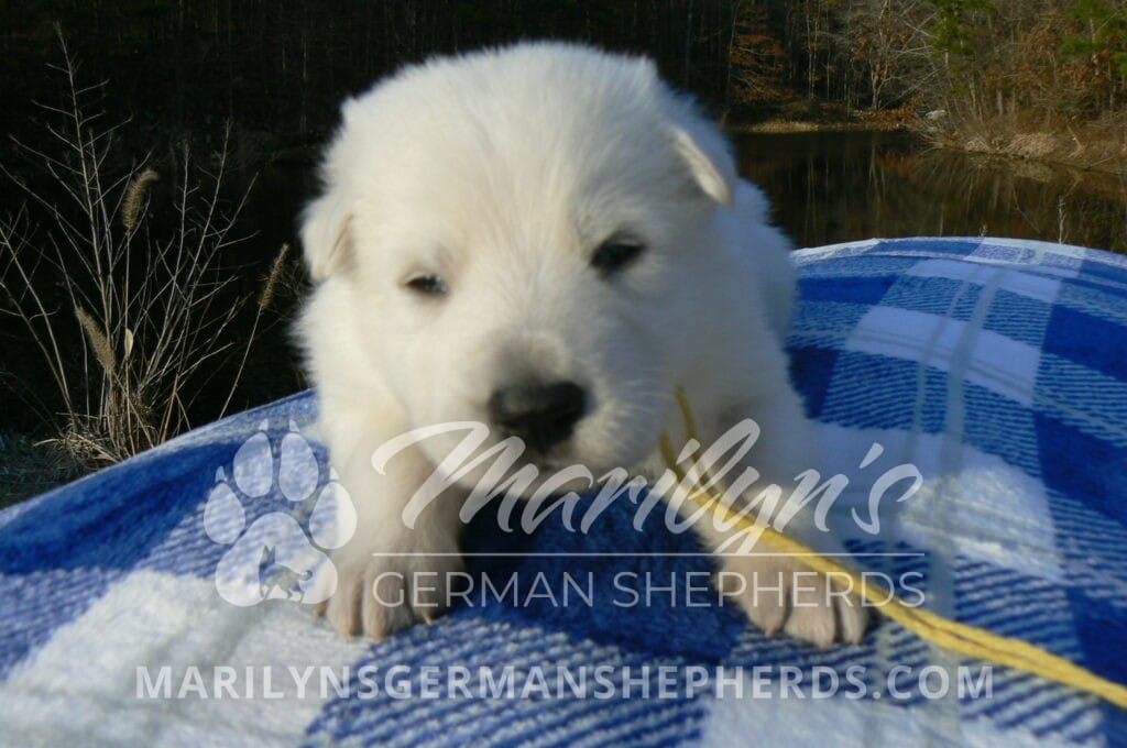 Miami’s Mr. Backyard Honeysuckle is a white male puppy born 1-29-26, priced at $1850.00 with a limited registration contract and a neuter contract. PayPal Later is available for a puppy payment option.  His registration is AKC, American Kennel Club. He has a laidback personality. He is a snuggle baby. He likes to be with people. He is a very friendly puppy. He likes to play with his mom, brothers and sister. He likes to be picked up and loved on. He has a soft white coat. He is priced as a short coat puppy but he might be a long coat puppy. It is too early to tell on the coat length. If he is a long coat puppy the price will be adjusted to add $100.00 to the puppy price. He looks like a little polar bear cub romping around with his siblings. He is a cutie. He is very alert and smart. He will bring warmth and comfort to your family. His mother is Miami, one of my black and tan moms. His father is Dragon, my white dad. He has a puppy replacement health guarantee on genetic issues until one year old. His shots and wormings are up to date and he has been vet checked. He comes with 30 days of pet insurance free for accidents and illnesses, that the new pet owner must activate. After the free 30 days you can keep the pet insurance or it will self cancel. He can be reserved for you with a $200.00 non-refundable deposit. I accept puppy payment through Paypal, Venmo, or Credit Card. He is available for puppy pick up March 26th. He can be shipped. Shipping is an additional cost of $680.00 which includes crate, airfare, and health certificate.  I fly my puppies on Fridays. He will make an amazing new addition to your family.