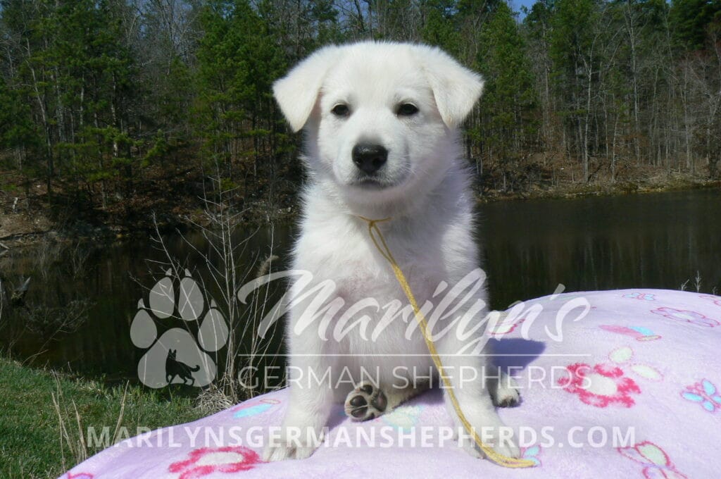 Miami’s Mr. Backyard Honeysuckle is a snow white male puppy born 1-29-26, priced at $1250.00 with a limited registration contract and a neuter contract. PayPal Later is available for a puppy payment option. His registration is AKC, American Kennel Club. He has a laidback personality. He is a snuggle baby. He likes to play with his puppy toys and is always ready for doggy treats. He likes to be with people. He is a very friendly puppy. He likes to play with his mom, brothers. He likes to be picked up and loved on. He has a soft white short coat. He looks like a little polar bear cub romping around with his siblings. He is a cutie. He is very alert and smart. He is using a doggy door to go outside to go potty. He will finish house training for you very fast. He will bring warmth and comfort to your family. His mother is Miami, one of my black and tan moms. His father is Dragon, my white dad. He has a puppy replacement health guarantee on genetic issues until one year old. His shots and wormings are up to date and he has been vet checked. He comes with 30 days of pet insurance free for accidents and illnesses, that the new pet owner must activate. After the free 30 days you can keep the pet insurance or it will self cancel. He can be reserved for you with a $200.00 non-refundable deposit. I accept puppy payment through Paypal, Venmo, or Credit Card. He is available for puppy pick up now. He can not be shipped. He must be picked up at my home in Piedmont, Missouri. He will make an amazing new addition to your family.
