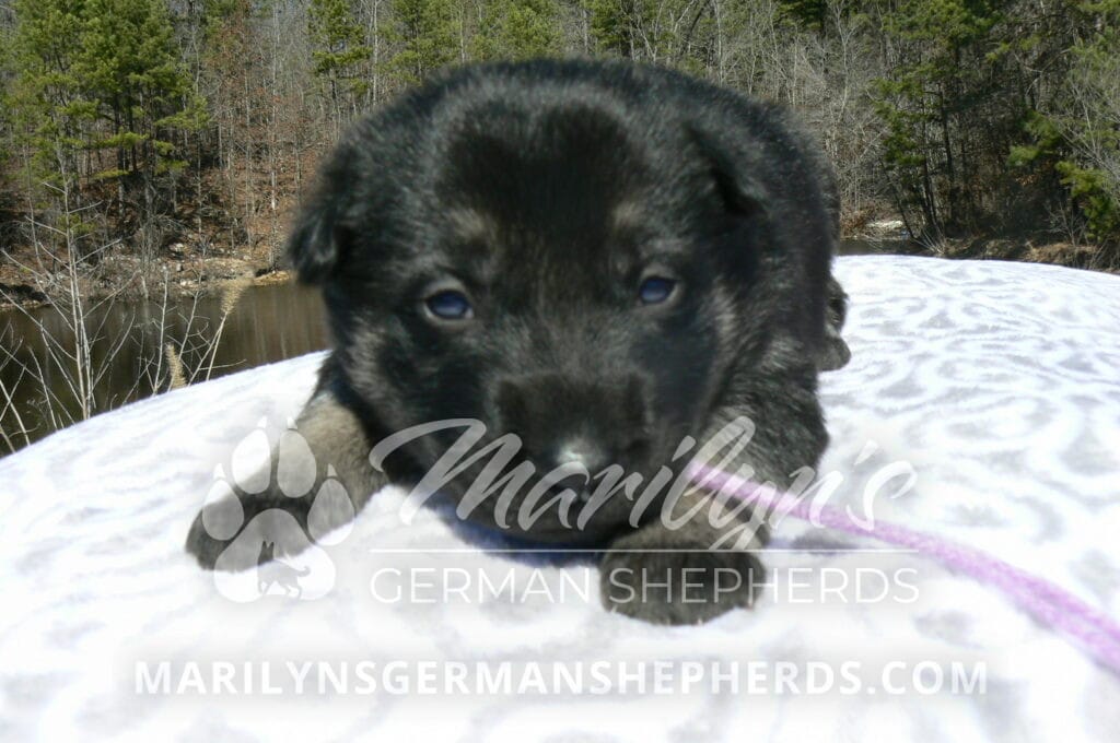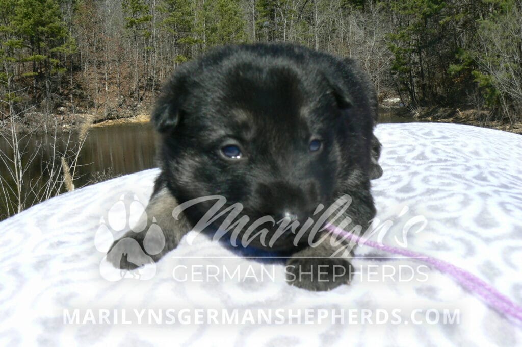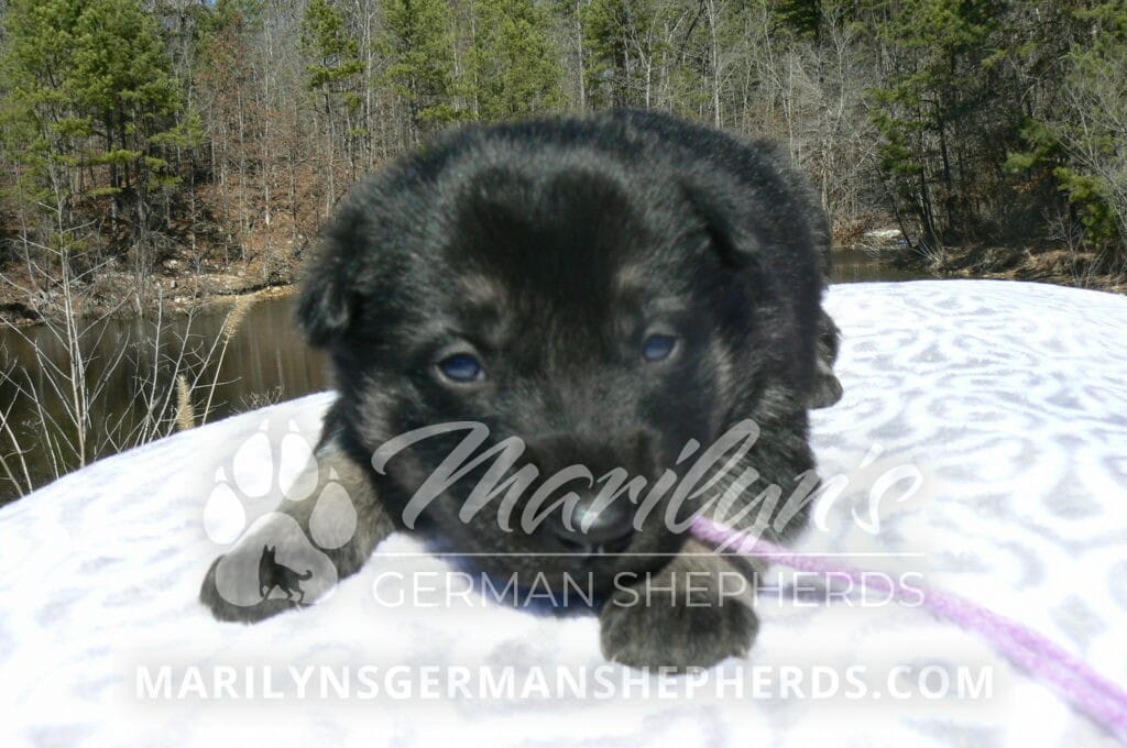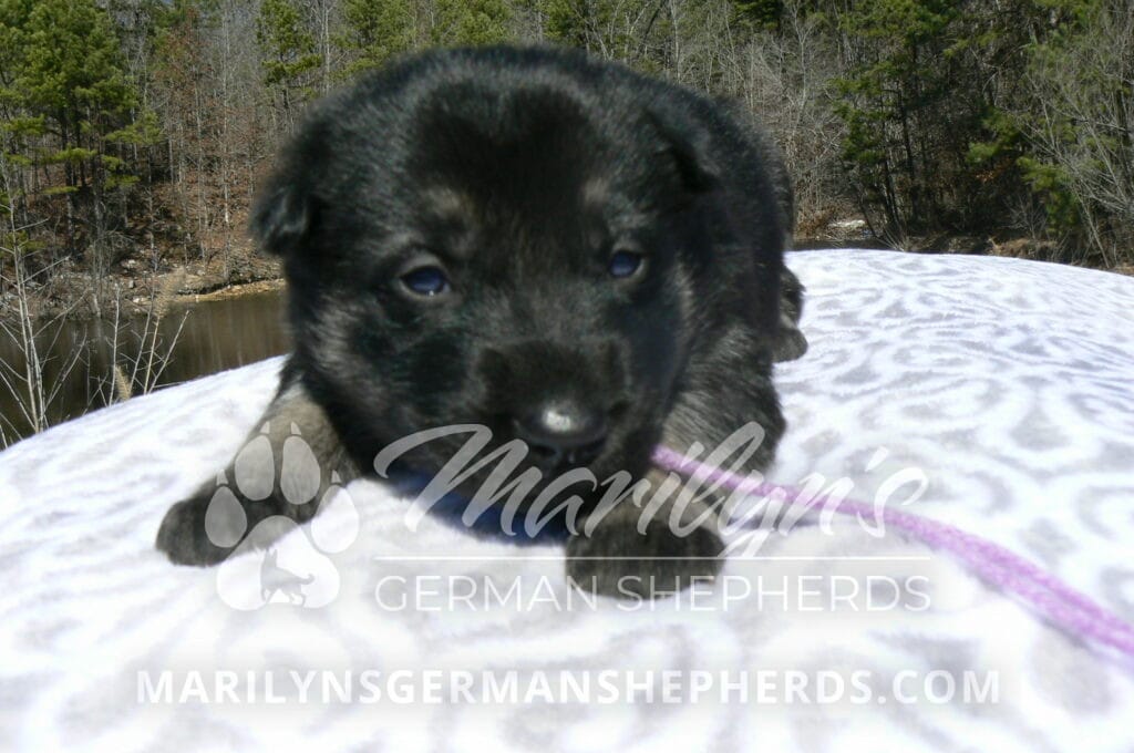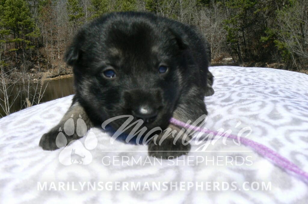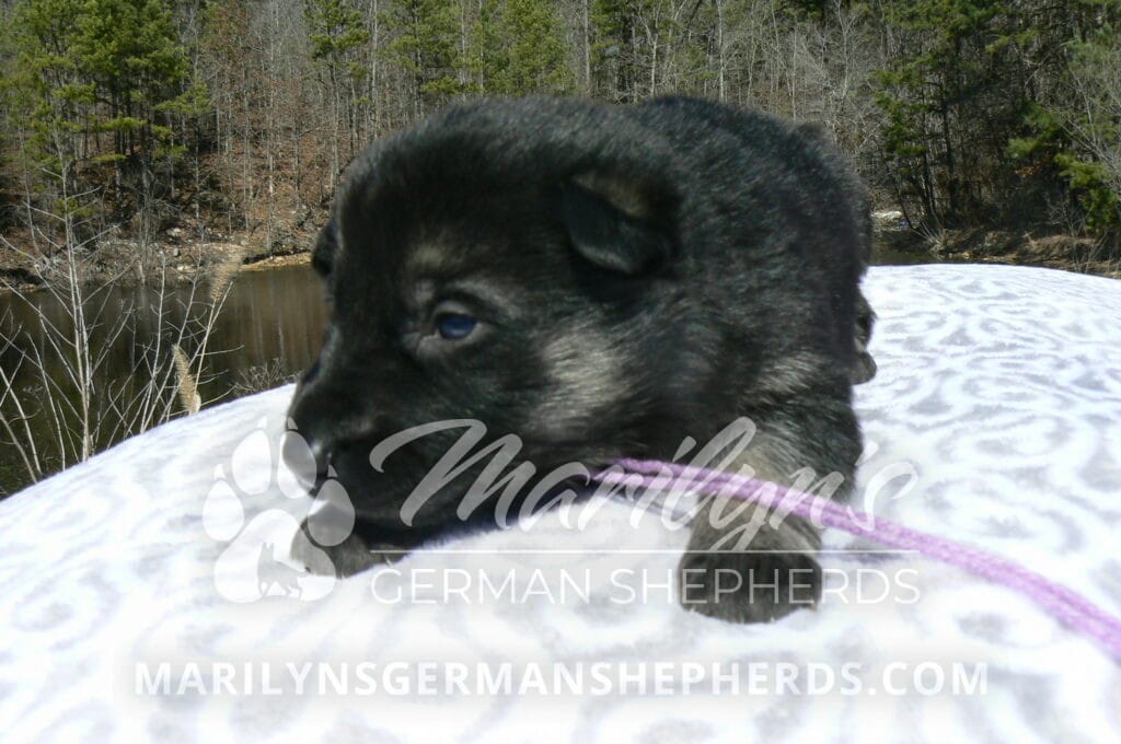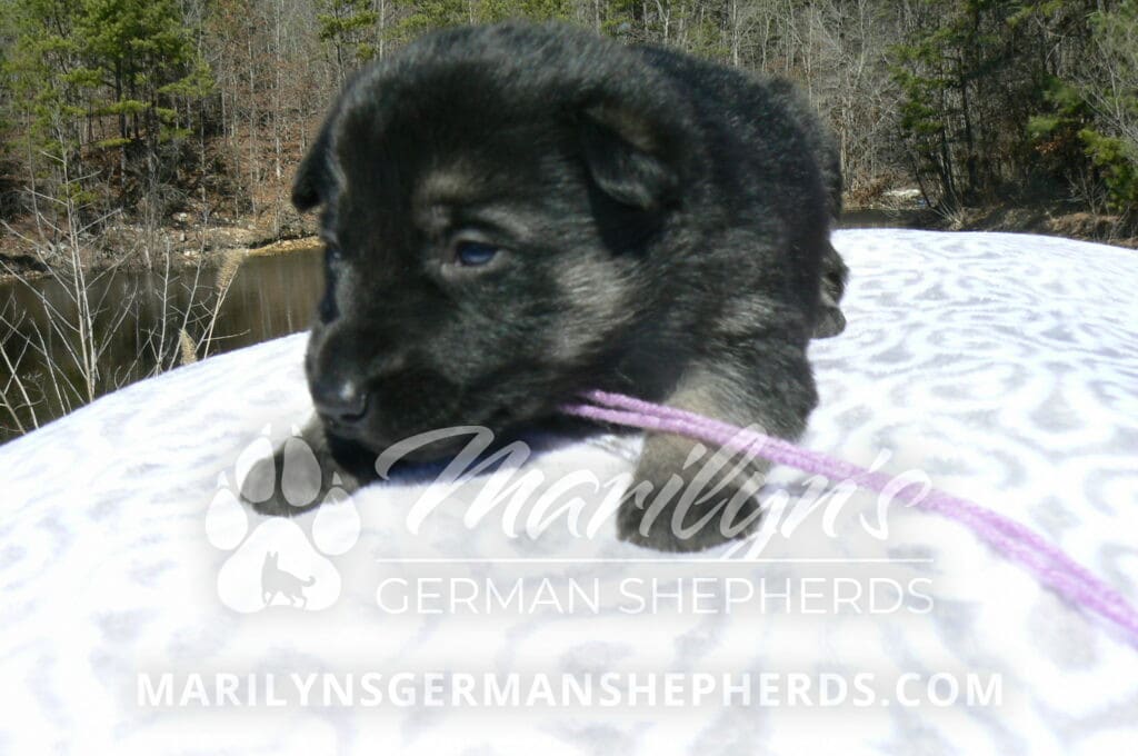 Midnight Illusion’s Miss Fresh Cut Lilacs is a beautiful black and silver female puppy, born 2-5-26, priced at $1850.00 with limited registration and a spay contract. PayPal Later is available for a puppy payment option. Her registration is AKC, American Kennel Club. She has a playful personality. She is very loving puppy. She will have the classic German Shepherd look. She is a short coat black and silver puppy. She will keep the black mask on her face when she is an adult. She likes playing with her mom and brothers and sisters. She is very smart. She likes to be picked up and loved on. She is friendly and likes to be around people. She is a sweetie pie. Her mother is Midnight Illusion, one of my black moms. Her father is Vanillabean Noel, my Isabella dad. The color Isabella is liver and blue together. She has a puppy replacement health guarantee on genetic issues until one year old. Her shots and wormings are up to date and she has been vet checked. She comes with 30 days of free pet insurance on accidents and illnesses, that the new pet owner must activate. After the free 30 days you can keep the pet insurance or it will self cancel. She can be reserved for you with a $200.00 non-refundable deposit. I accept puppy payment through Paypal, cash, credit card, PayPal Later or Venmo. She is available for puppy pick up April 2nd. She can be shipped. Shipping is $680.00 which includes crate, airfare and health certificate. I fly my puppies on Fridays. She will make an amazing new addition to your family.