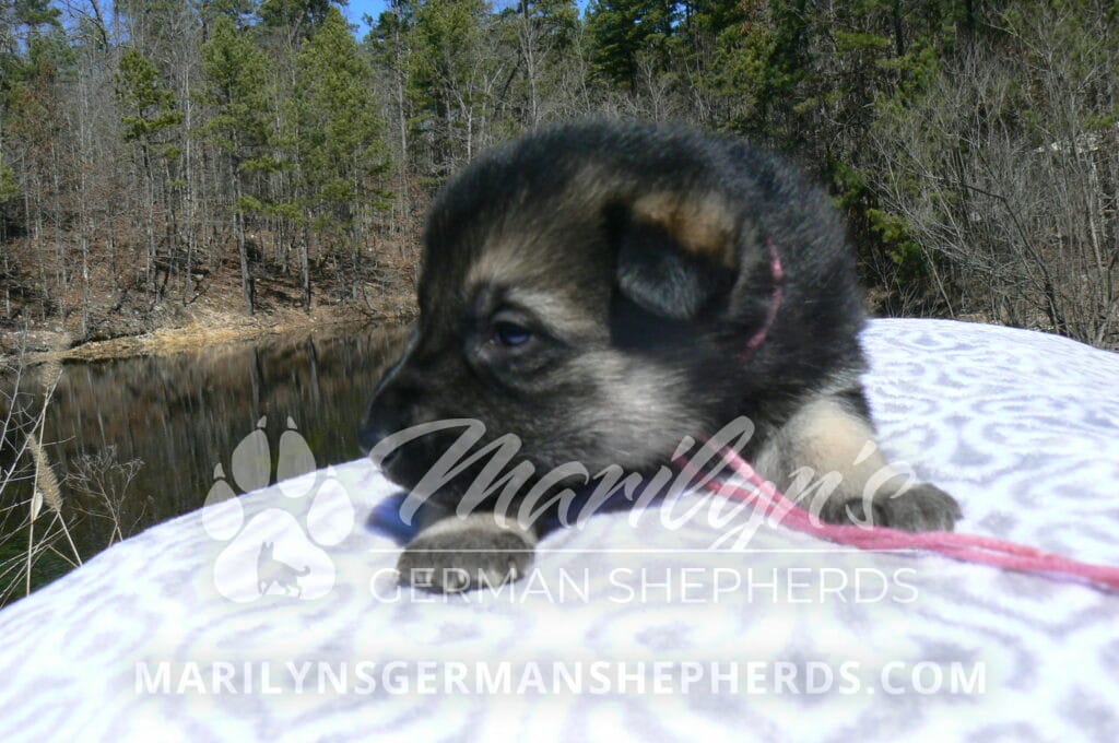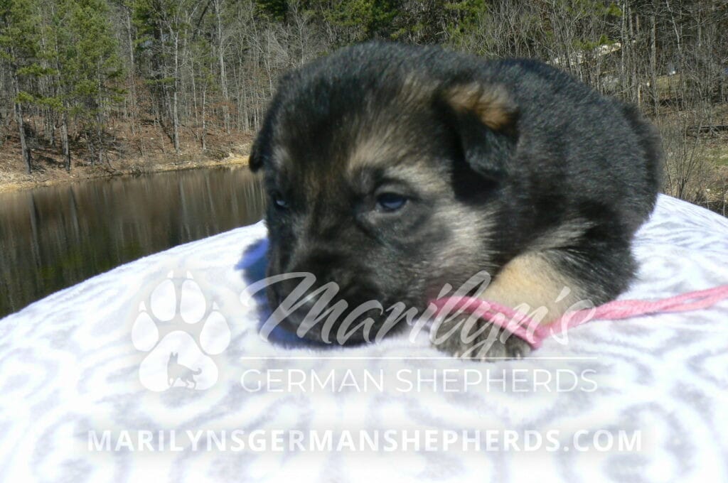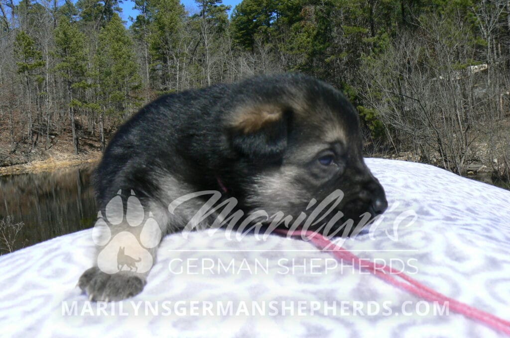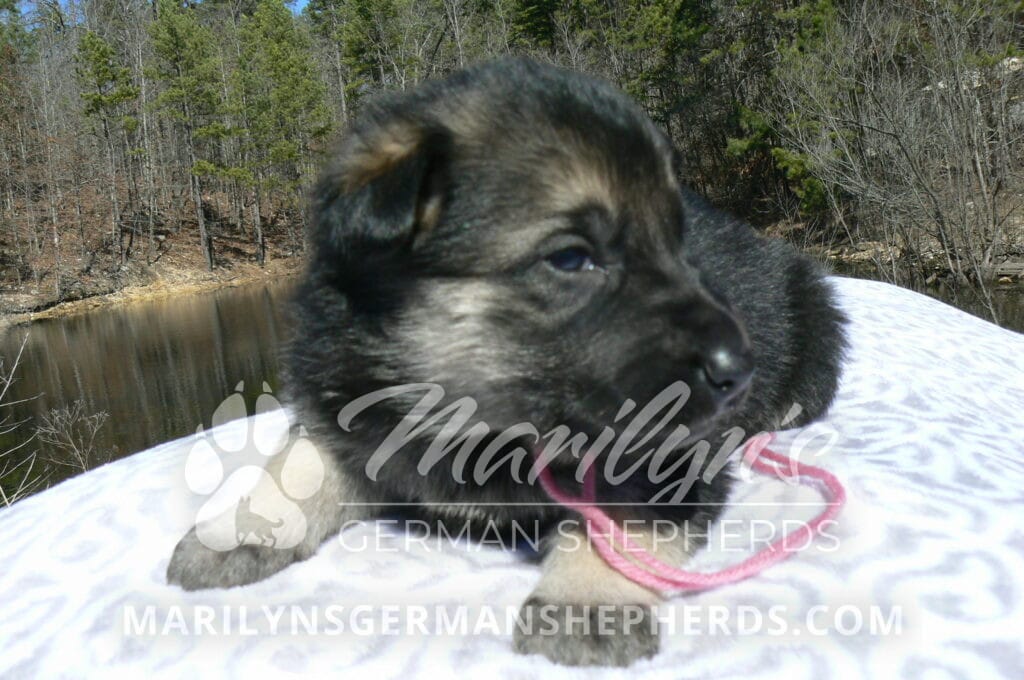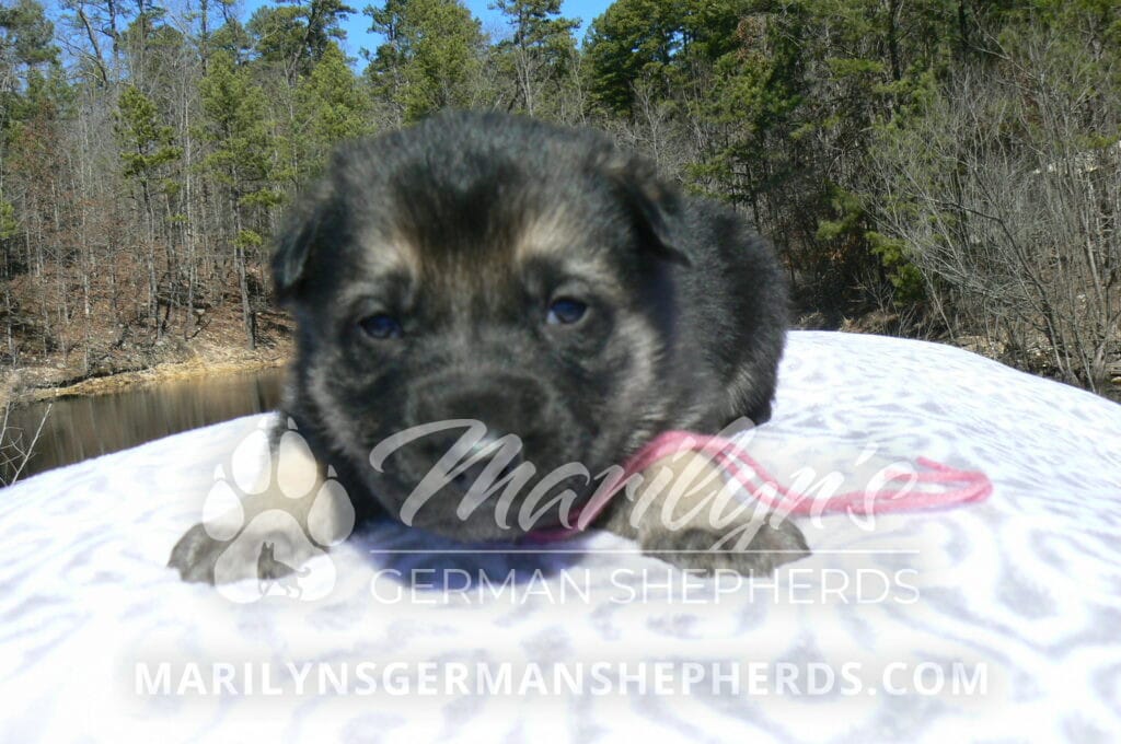 Midnight Illusion’s Miss Pink Pineapple Sunrise is a beautiful black and silver female puppy, born 2-5-26, priced at $1850.00 with limited registration and a spay contract. PayPal Later is available for a puppy payment option. Her registration is AKC, American Kennel Club. She has a friendly personality. She is very loving puppy. She will have the classic German Shepherd look. She is a short coat black and silver puppy. She will keep the black mask on her face when she is an adult. She likes playing with her litter mates. She is very smart. She likes attention and likes to be picked up and loved on. She likes to be with people. She is a sweetheart. Her mother is Midnight Illusion, one of my black moms. Her father is Vanillabean Noel, my Isabella dad. The color Isabella is liver and blue together. She has a puppy replacement health guarantee on genetic issues until one year old. Her shots and wormings are up to date and she has been vet checked. She comes with 30 days of free pet insurance on accidents and illnesses, that the new pet owner must activate. After the free 30 days you can keep the pet insurance or it will self cancel. She can be reserved for you with a $200.00 non-refundable deposit. I accept puppy payment through Paypal, cash, credit card, PayPal Later or Venmo. She is available for puppy pick up April 2nd. She can be shipped. Shipping is $680.00 which includes crate, airfare and health certificate. I fly my puppies on Fridays. She will make an amazing new addition to your family.