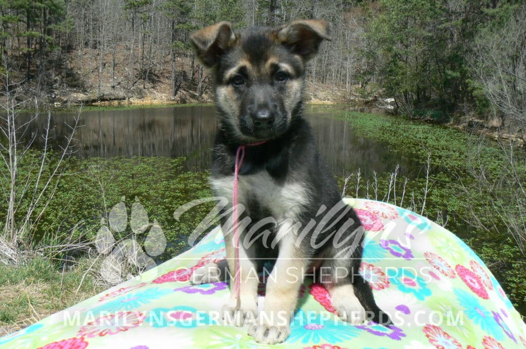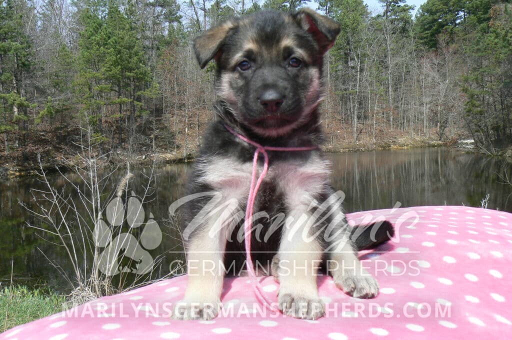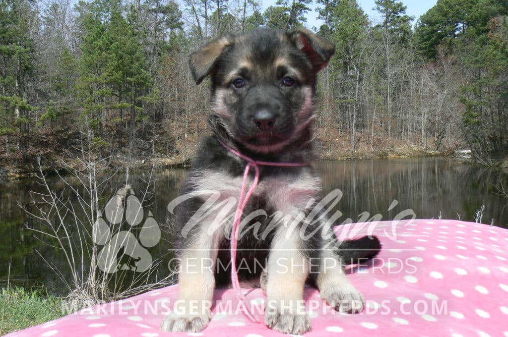 Midnight Illusion’s Miss Pink Pineapple Sunrise is a beautiful black and silver female puppy, born 2-5-26, priced at $1450.00 with limited registration and a spay contract. PayPal Later is available for a puppy payment option. Her registration is AKC, American Kennel Club. She has a friendly personality. She is very loving puppy. She will have the classic German Shepherd look. She is a short coat black and silver puppy. She will keep the black mask on her face when she is an adult. She likes playing with her litter mates. She is very smart. She likes attention and likes to be picked up and loved on. She likes to be with people. She is a sweetheart. Her mother is Midnight Illusion, one of my black moms. Her father is Vanillabean Noel, my Isabella dad. The color Isabella is liver and blue together. She has a puppy replacement health guarantee on genetic issues until one year old. Her shots and wormings are up to date and she has been vet checked. She comes with 30 days of free pet insurance on accidents and illnesses, that the new pet owner must activate. After the free 30 days you can keep the pet insurance or it will self cancel. She can be reserved for you with a $200.00 non-refundable deposit. I accept puppy payment through Paypal, cash, credit card, PayPal Later or Venmo. She is available for puppy pick up now. She can not be shipped. She must be picked up at my home in Piedmont, Missouri She will make an amazing new addition to your family.