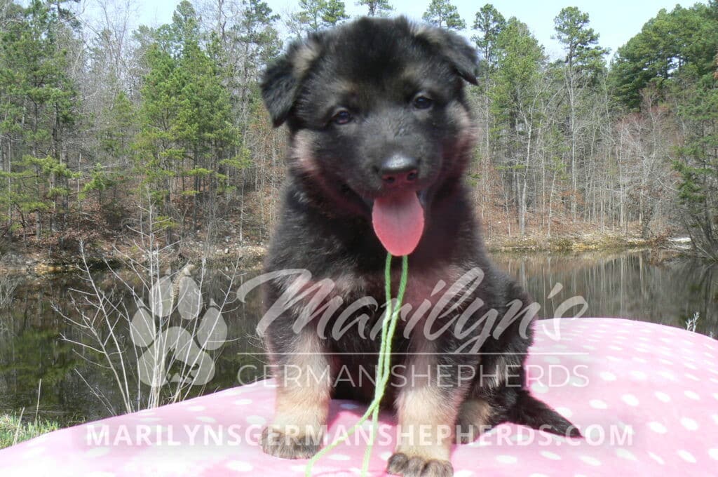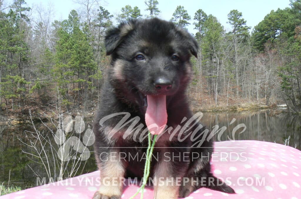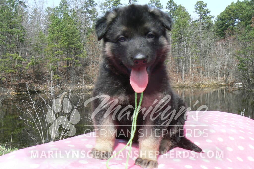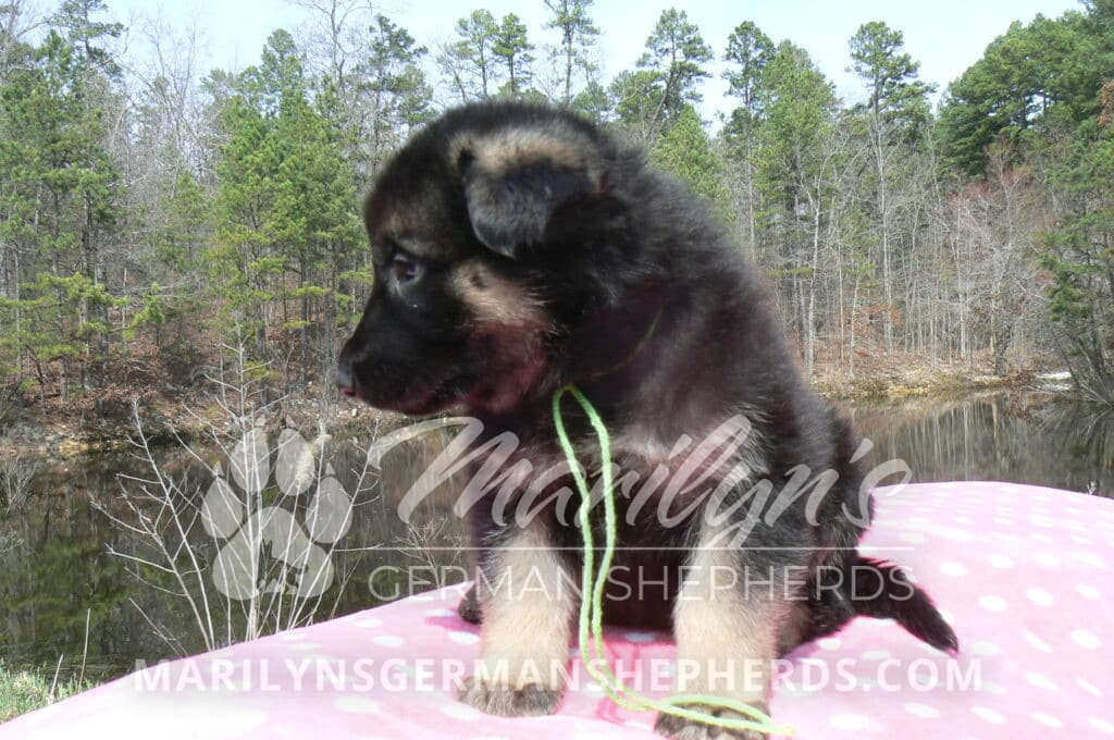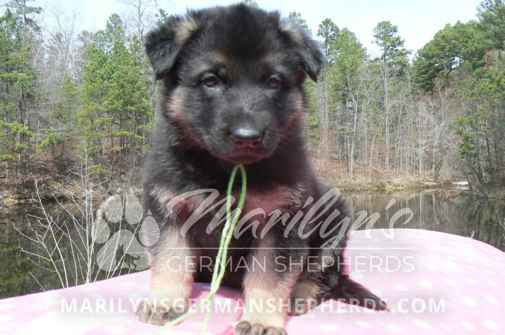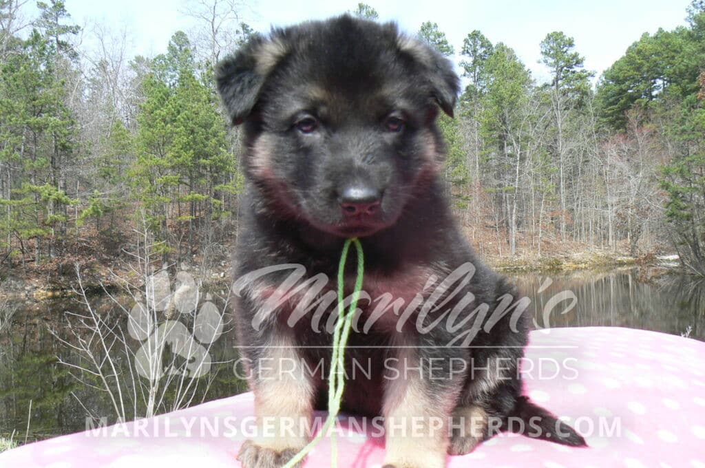 Midnight Illusion’s Miss Sweet Kiwi and Starfruit is a beautiful black and tan female puppy, born 2-5-26, priced at $1450.00 with limited registration and a spay contract. PayPal Later is available for a puppy payment option. Her registration is AKC, American Kennel Club. She has a kind personality. She is a snuggler. She will have the classic German Shepherd look. She is a short coat black and tan puppy. She will keep the black mask on her face when she is an adult. She likes playing with her litter mates. She is very smart. She is a very friendly, loving puppy. She likes attention and likes to be picked up and loved on. She enjoyed being with people. She will bring love to you everyday. Her mother is Midnight Illusion, one of my black moms. Her father is Vanillabean Noel, my Isabella dad. The color Isabella is liver and blue together. She has a puppy replacement health guarantee on genetic issues until one year old. Her shots and wormings are up to date and she has been vet checked. She comes with 30 days of free pet insurance on accidents and illnesses, that the new pet owner must activate. After the free 30 days you can keep the pet insurance or it will self cancel. She can be reserved for you with a $200.00 non-refundable deposit. I accept puppy payment through Paypal, cash, credit card, PayPal Later or Venmo. She is available for puppy pick up now. She can not be shipped. She must be picked up at my home in Piedmont, Missouri. She will make an amazing new addition to your family.