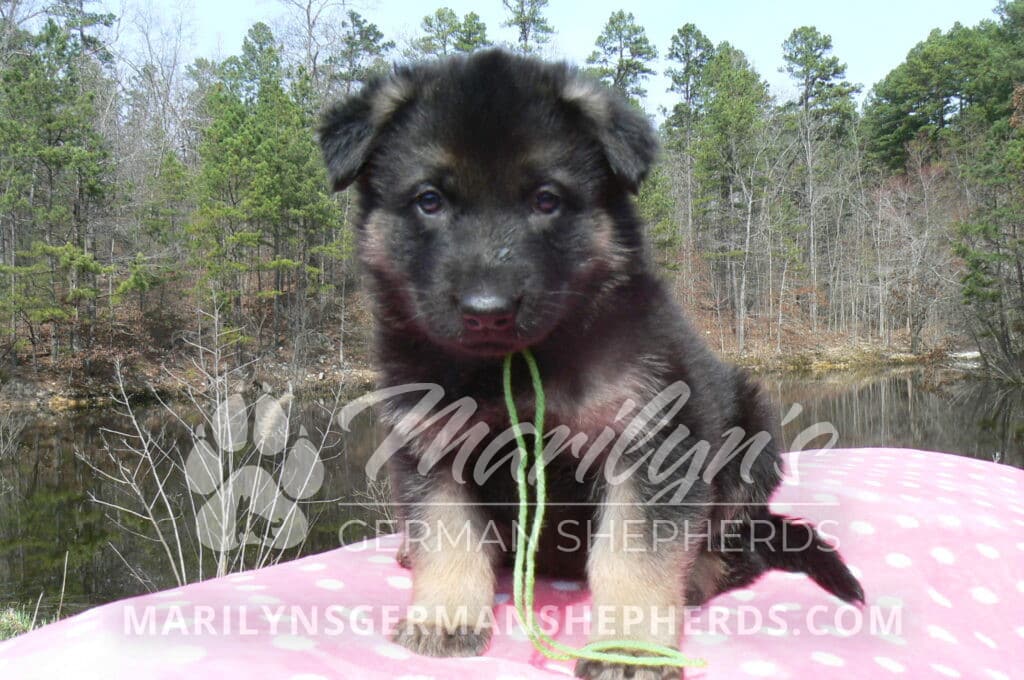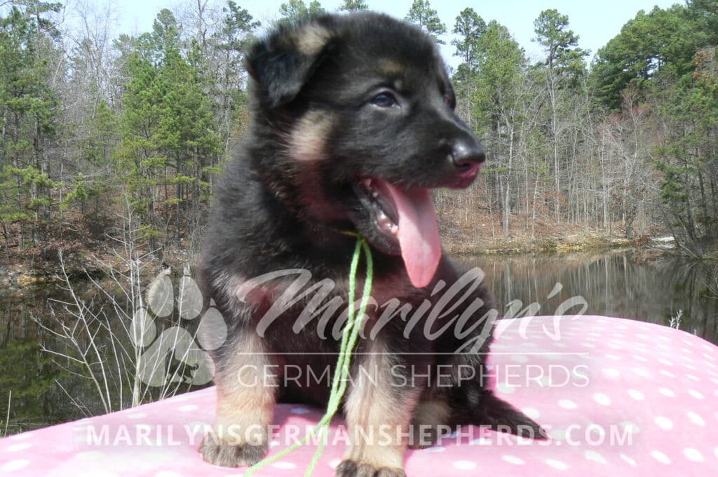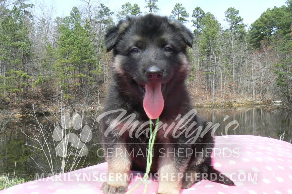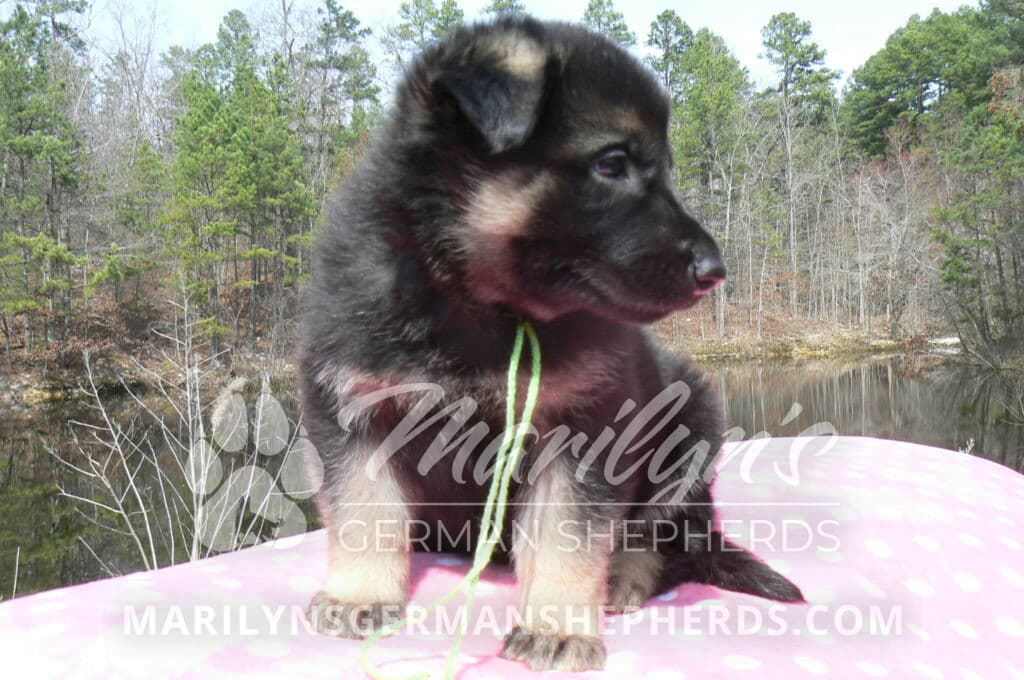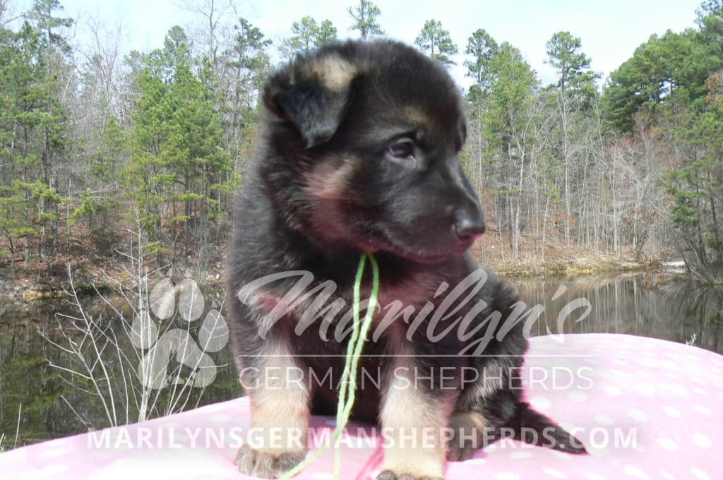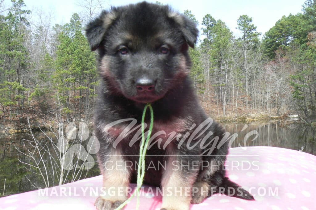 Midnight Illusion’s Miss Sweet Kiwi and Starfruit is a beautiful black and tan female puppy, born 2-5-26, priced at $1450.00 with limited registration and a spay contract. PayPal Later is available for a puppy payment option. Her registration is AKC, American Kennel Club. She has a kind personality. She is a snuggler. She will have the classic German Shepherd look. She is a short coat black and tan puppy. She will keep the black mask on her face when she is an adult. She likes playing with her litter mates. She is very smart. She is a very friendly, loving puppy. She likes attention and likes to be picked up and loved on. She enjoyed being with people. She will bring love to you everyday. Her mother is Midnight Illusion, one of my black moms. Her father is Vanillabean Noel, my Isabella dad. The color Isabella is liver and blue together. She has a puppy replacement health guarantee on genetic issues until one year old. Her shots and wormings are up to date and she has been vet checked. She comes with 30 days of free pet insurance on accidents and illnesses, that the new pet owner must activate. After the free 30 days you can keep the pet insurance or it will self cancel. She can be reserved for you with a $200.00 non-refundable deposit. I accept puppy payment through Paypal, cash, credit card, PayPal Later or Venmo. She is available for puppy pick up now. She can not be shipped. She must be picked up at my home in Piedmont, Missouri. She will make an amazing new addition to your family.