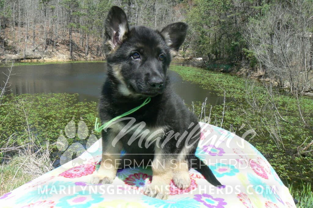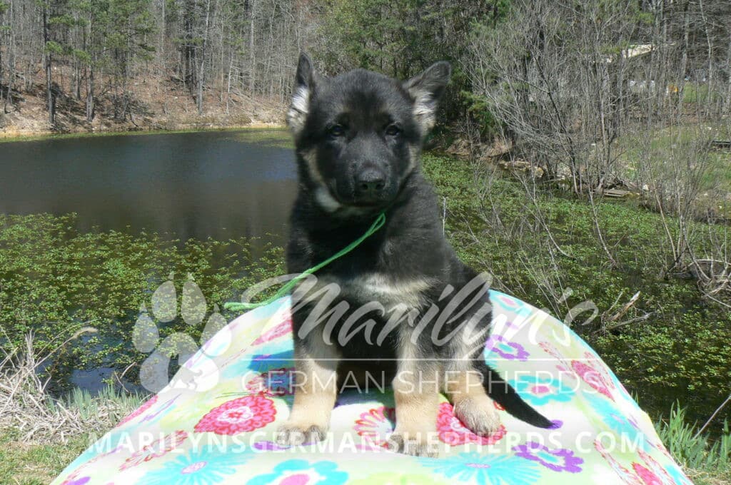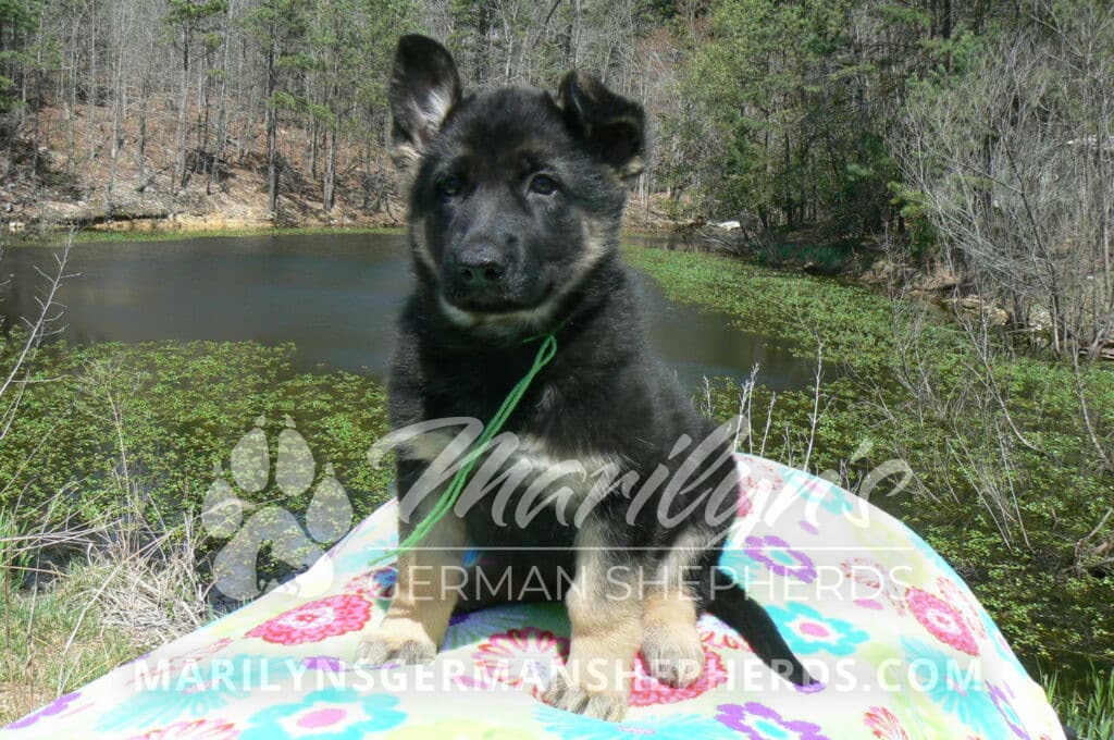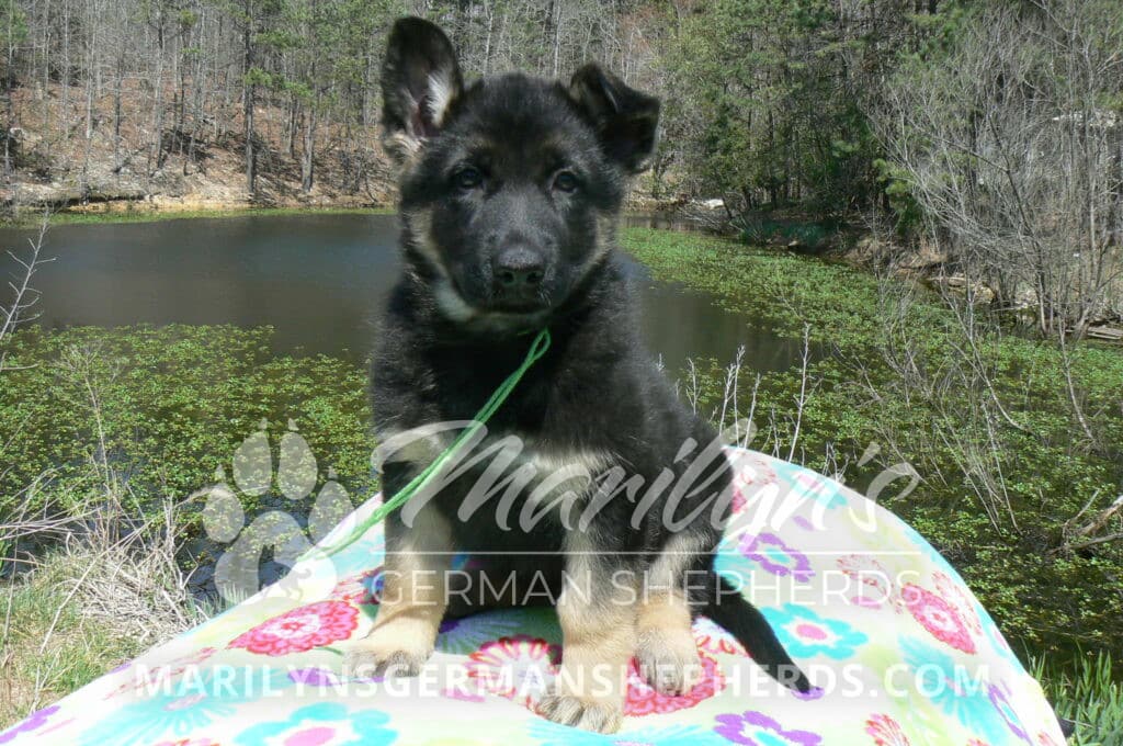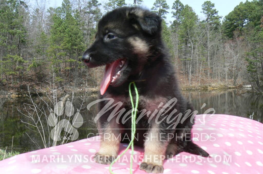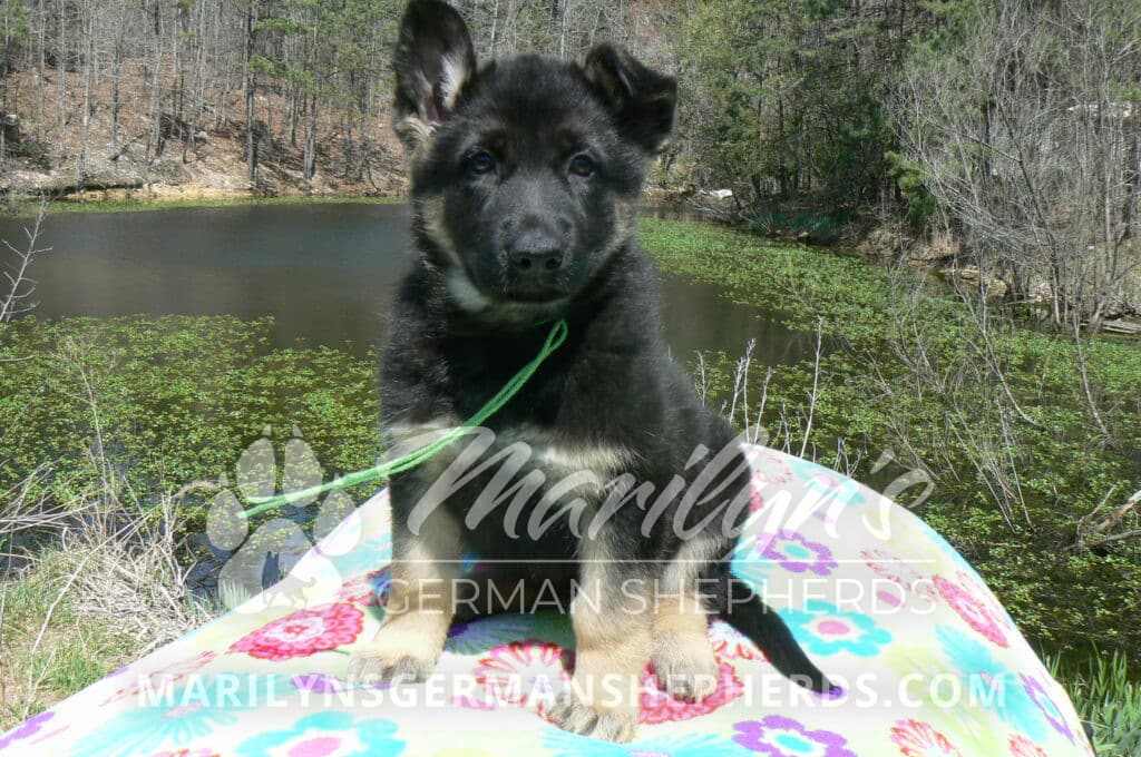 Midnight Illusion’s Miss Sweet Kiwi and Starfruit is a beautiful black and tan female puppy, born 2-5-26, priced at $1450.00 with limited registration and a spay contract. PayPal Later is available for a puppy payment option. Her registration is AKC, American Kennel Club. She has a kind personality. She is a snuggler. She will have the classic German Shepherd look. She is a short coat black and tan puppy. She will keep the black mask on her face when she is an adult. She likes playing with her litter mates. She is very smart. She is a very friendly, loving puppy. She likes attention and likes to be picked up and loved on. She enjoyed being with people. She will bring love to you everyday. Her mother is Midnight Illusion, one of my black moms. Her father is Vanillabean Noel, my Isabella dad. The color Isabella is liver and blue together. She has a puppy replacement health guarantee on genetic issues until one year old. Her shots and wormings are up to date and she has been vet checked. She comes with 30 days of free pet insurance on accidents and illnesses, that the new pet owner must activate. After the free 30 days you can keep the pet insurance or it will self cancel. She can be reserved for you with a $200.00 non-refundable deposit. I accept puppy payment through Paypal, cash, credit card, PayPal Later or Venmo. She is available for puppy pick up now. She can not be shipped. She must be picked up at my home in Piedmont, Missouri. She will make an amazing new addition to your family.