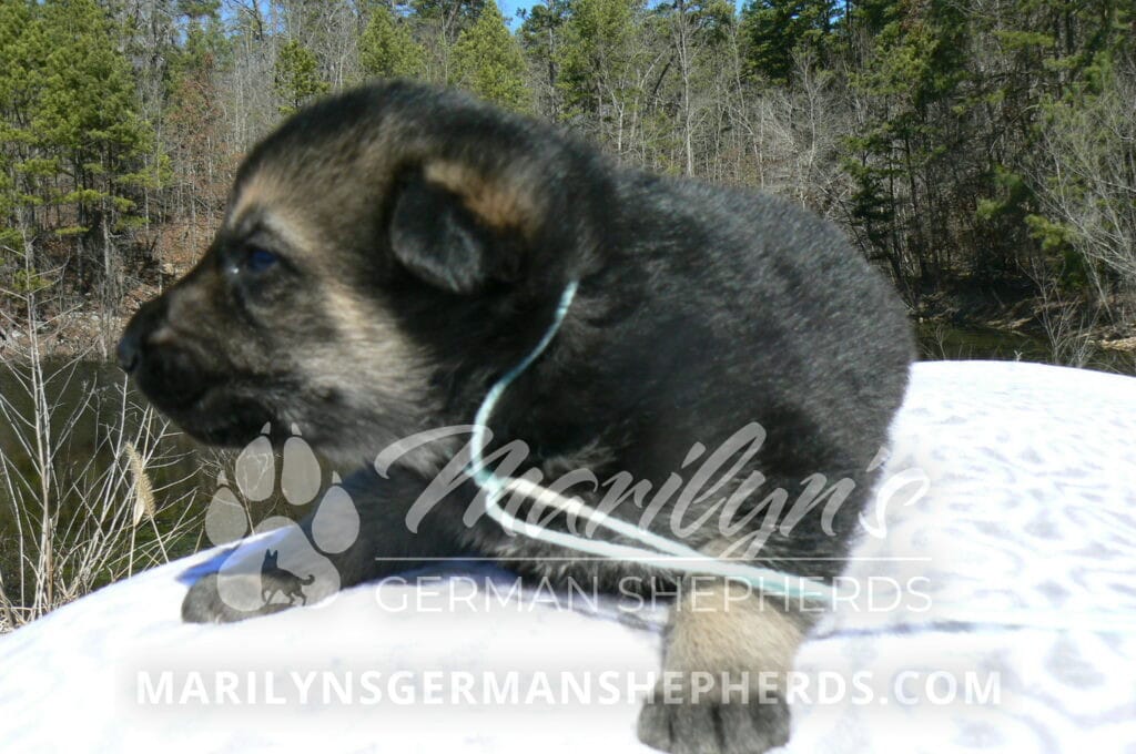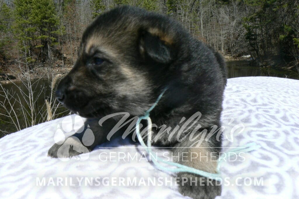 Midnight Illusion’s Mr. Fresh Rainfall is a black and tan male puppy, born 2-5-26, priced at $1850.00 with limited registration and a neuter contract. He has the option of PayPal Later payment plan through my website. His registration is AKC, American Kennel Club. He has a gentle natured personality. He is a loving puppy. He is a short coat black and tan puppy. He will keep the black mask on his face when he is an adult. He enjoys playing puppy games with his litter mates. He will have the classic German Shepherd look as an adult. He is a very friendly puppy. He enjoys being picked up and loved on. He is very alert and smart. He likes to be around people. He is a puppy that will make your family complete. His mother is Midnight Illusion, one of my black moms. His father is Vanillabean Noel, my Isabella dad. The color Isabella is liver and blue together. He has a puppy replacement health guarantee on genetic issues until one year old. His shots and wormings are up to date and he has been vet checked. He comes with 30 days of pet insurance free for accidents and illnesses, that the new pet owner must activate. After the free 30 days you can keep the pet insurance or it will self cancel. He can be reserved for you with a $200.00 non-refundable deposit. I accept puppy payment through Paypal, cash, credit card, or Venmo. He is available for puppy pick up April 2nd. He can be shipped. Shipping is an additional cost of $680.00 which includes crate, airfare, and health certificate. I fly my puppies on Fridays. He will make an amazing new addition to your family.