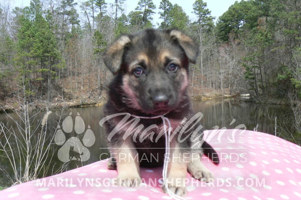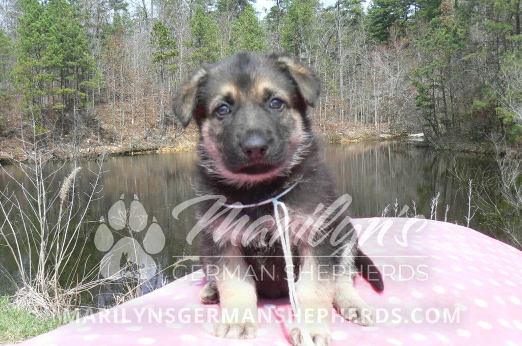 Midnight Illusion’s Mr. Fresh Rainfall is a black and tan male puppy, born 2-5-26, priced at $1450.00 with limited registration and a neuter contract. He has the option of PayPal Later payment plan through my website. His registration is AKC, American Kennel Club. He has a gentle natured personality. He is a loving puppy. He will have the classic German Shepherd look. He is a short coat black and tan puppy. He will keep the black mask on his face when he is an adult. He enjoys playing puppy games with his litter mates. He is very proud of himself for using the doggy door to go outside to go potty. He will finish house training for you very fast. He is very smart. He is a very friendly puppy. He enjoys being picked up and loved on. He is very alert. He likes to be around people. He is a puppy that will make your family complete. His mother is Midnight Illusion, one of my black moms. His father is Vanillabean Noel, my Isabella dad. The color Isabella is liver and blue together. He has a puppy replacement health guarantee on genetic issues until one year old. His shots and wormings are up to date and he has been vet checked. He comes with 30 days of pet insurance free for accidents and illnesses, that the new pet owner must activate. After the free 30 days you can keep the pet insurance or it will self cancel. He can be reserved for you with a $200.00 non-refundable deposit. I accept puppy payment through Paypal, cash, credit card, or Venmo. He is available for puppy pick up now. He can not be shipped. He must be picked up at my home in Piedmont, Missouri. He will make an amazing new addition to your family.
