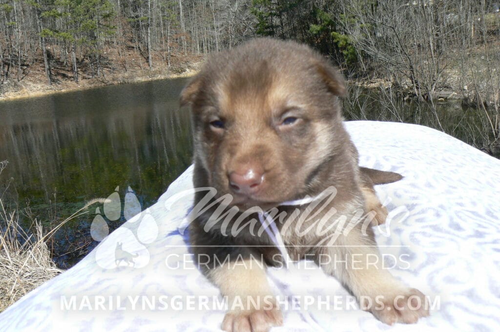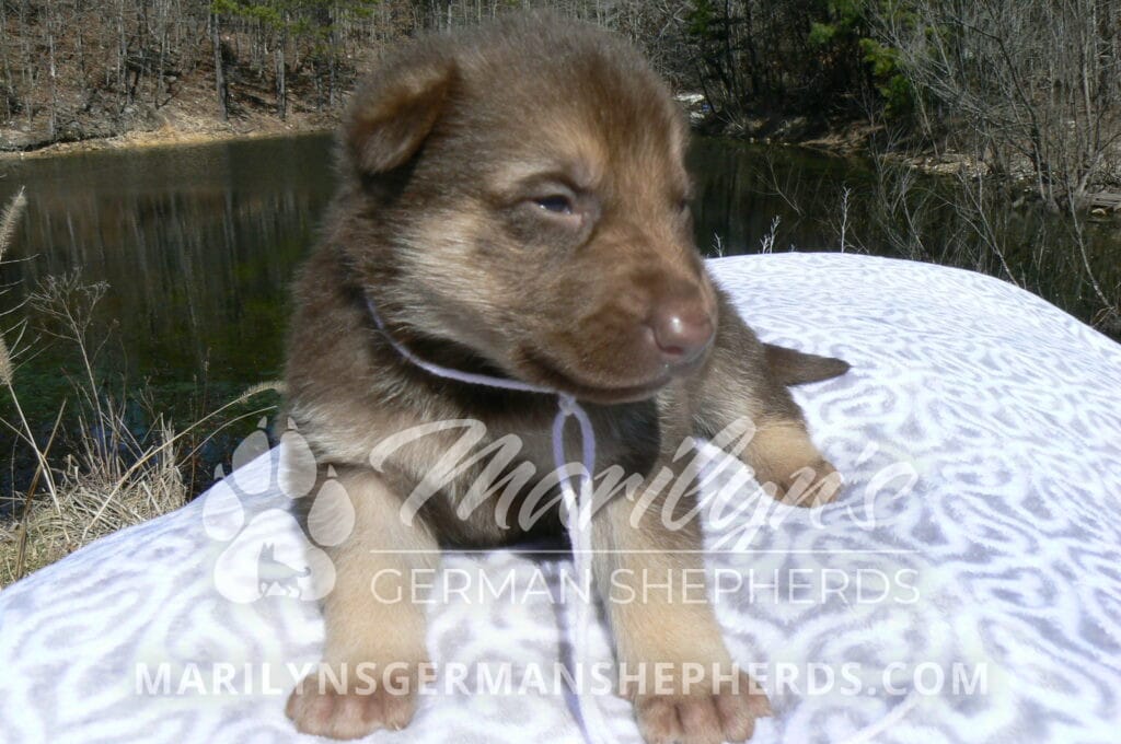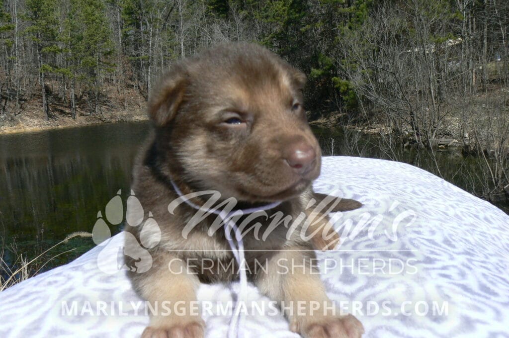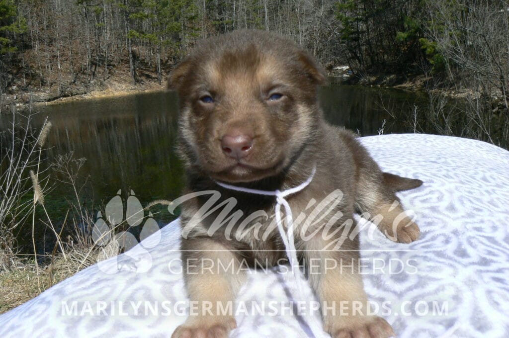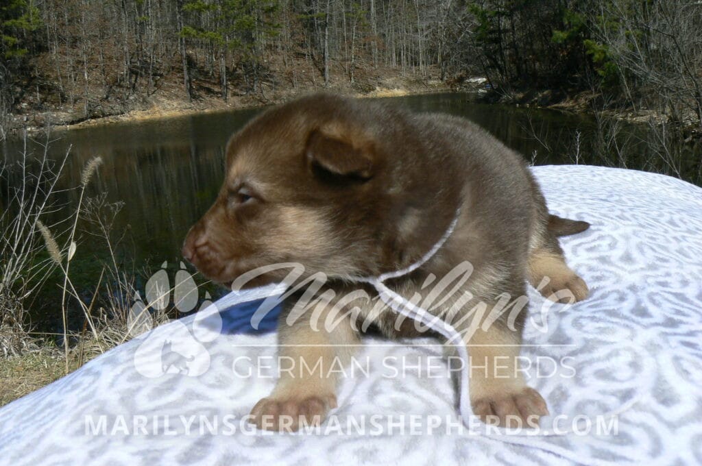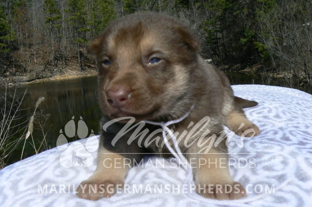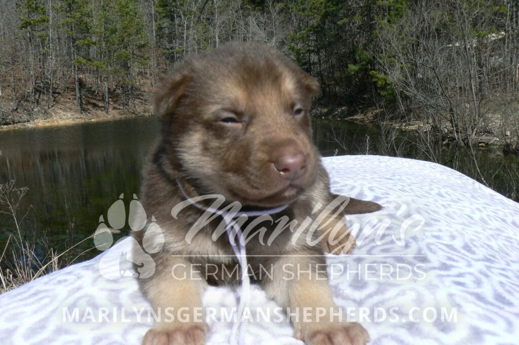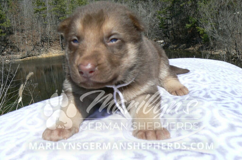 Midnight Illusion’s Mr. Waikiki Beach Coconut is a rare liver and silver male puppy, born 2-5-26, priced at $2350.00 with limited registration and a neuter contract. He has the option of PayPal Later payment plan through my website. His registration is AKC, American Kennel Club. He has a curious personality. He has blue eyes. When he is an adult his eyes will either stay blue or turn green or be a light hazel color. He is very alert and pays attention to things. He is a short coat liver and silver puppy. He will keep the liver mask on his face when he is an adult. The color liver in a German Shepherd is a chocolate color. He enjoys romping with his litter mates. He will have the classic German Shepherd look as an adult with a unique twist in the colors. He will be gorgeous when he is an adult. He is a very friendly puppy. He enjoys being picked up and loved on. He is very smart. He likes to be around people. He will be a very loving member of your family. His mother is Midnight Illusion, one of my black moms. His father is Vanillabean Noel, my Isabella dad. The color Isabella is liver and blue together. He has a puppy replacement health guarantee on genetic issues until one year old. His shots and wormings are up to date and he has been vet checked. He comes with 30 days of pet insurance free for accidents and illnesses, that the new pet owner must activate. After the free 30 days you can keep the pet insurance or it will self cancel. He can be reserved for you with a $200.00 non-refundable deposit. I accept puppy payment through Paypal, cash, credit card, or Venmo. He is available for puppy pick up April 2nd. He can be shipped. Shipping is an additional cost of $680.00 which includes crate, airfare, and health certificate. I fly my puppies on Fridays. He will make an amazing new addition to your family.