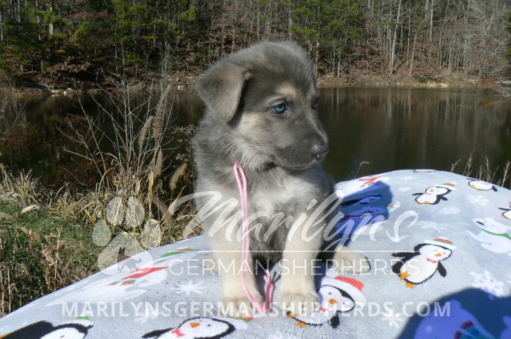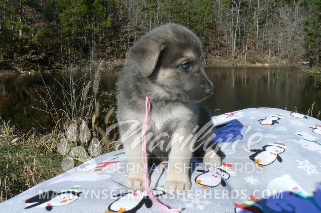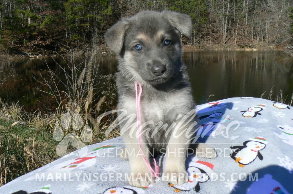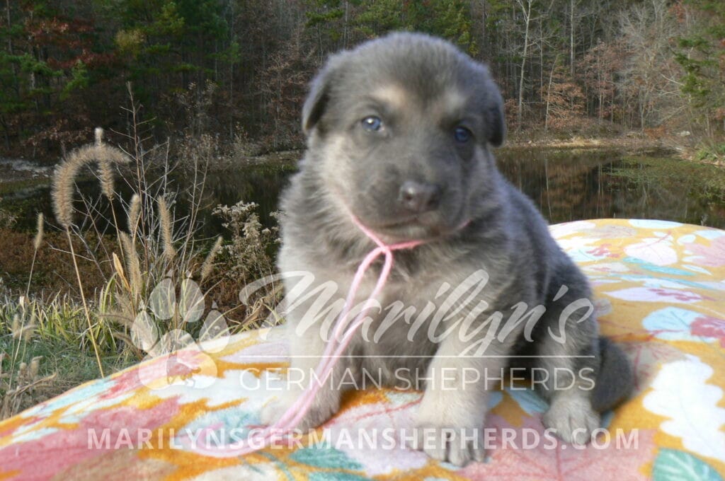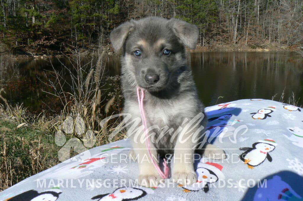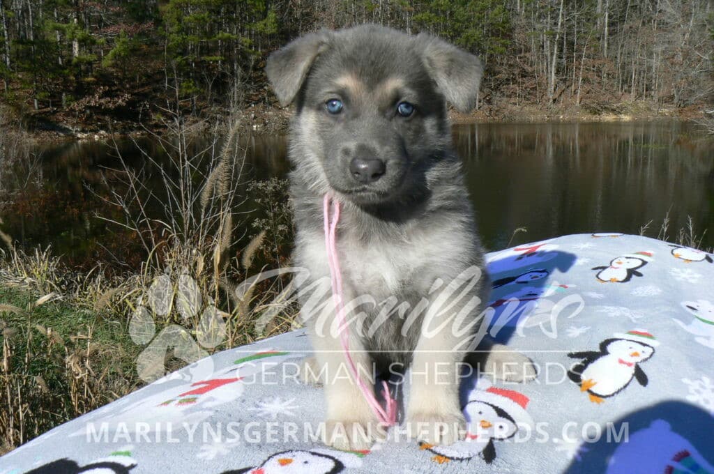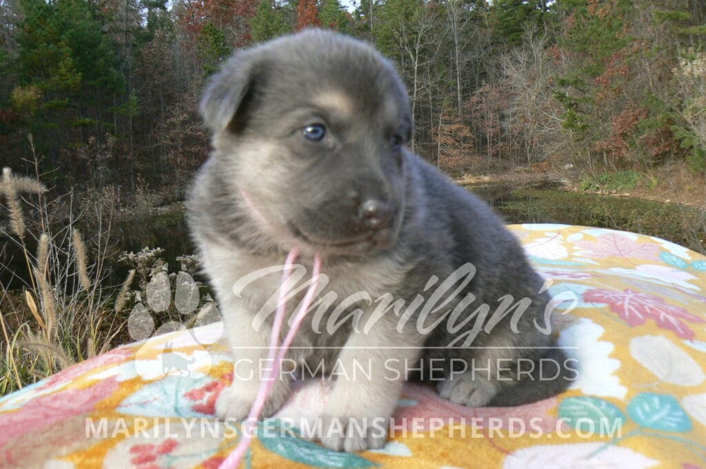 Smokie Jo’s Miss Winterberry Wonder is a beautiful blue and silver female puppy born 10-18-25, priced at $2150.00 with limited registration and a spay contract. PayPal Later is available for a puppy payment option. Her registration is AKC, American Kennel Club. She has a playful personality. She has beautiful blue eyes. Her eyes will stay blue, or turn green, or be a light color when she is an adult. She is a little bit of a talker. She is a short coat puppy. She is a blue and silver puppy that will keep the blue mask on her face as an adult. The blue color in a German Shepherd is a soft gray color. She is very smart. She is a very friendly, loving puppy. She likes attention and likes to be loved on. She likes to play with her litter mates and her mom. She is adorable. Her mother is Smokie Jo, my solid blue mom. Her father is Vanillabean Noel, my Isabella dad. The color Isabella is liver and blue together. She has a puppy replacement health guarantee on genetic issues until one year old. Her shots and wormings are up to date and she has been vet checked. She comes with 30 days of free pet insurance on accidents and illnesses, that the new pet owner must activate. After the free 30 days you can keep the pet insurance or it will self cancel. She can be reserved for you with a $200.00 non-refundable deposit. I accept puppy payment through Paypal, cash, credit card, PayPal Later or Venmo. She is available for puppy pick up December 13th. She can be shipped. Shipping is $680.00 which includes crate, airfare and health certificate. I fly my puppies on Fridays. She will make an amazing new addition to your family.